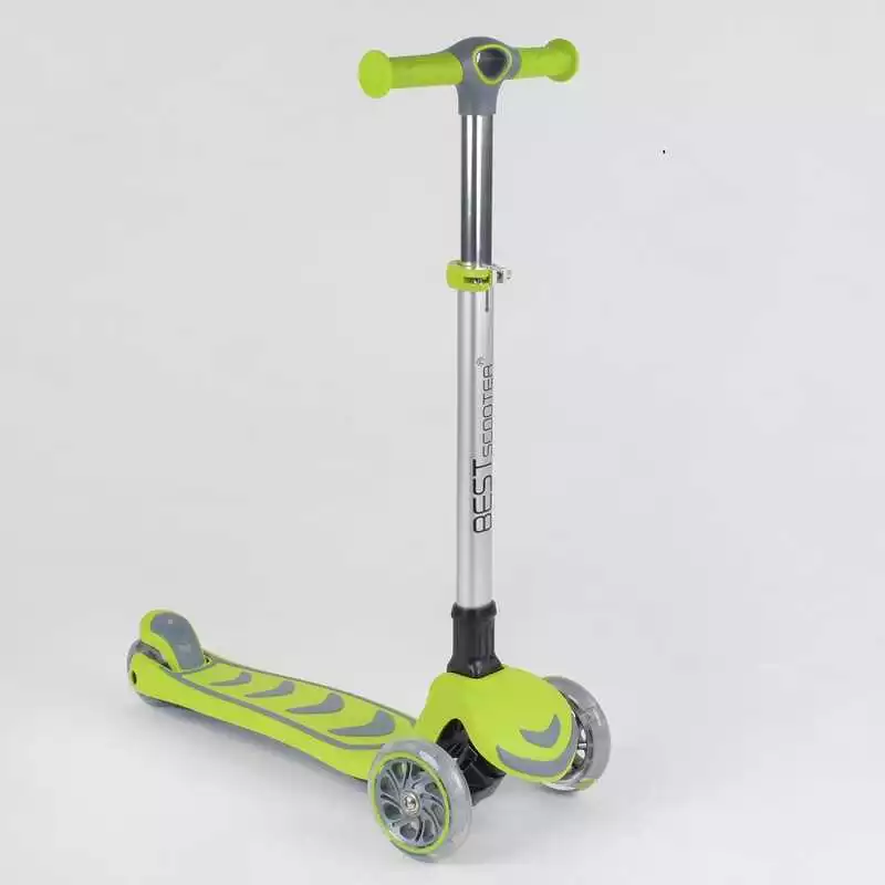 Самокат трехколесный 46987 (4) Best Scooter, САЛАТОВЫЙ, складной алюминиевый руль, 4 колеса PU со светом, d=12 см