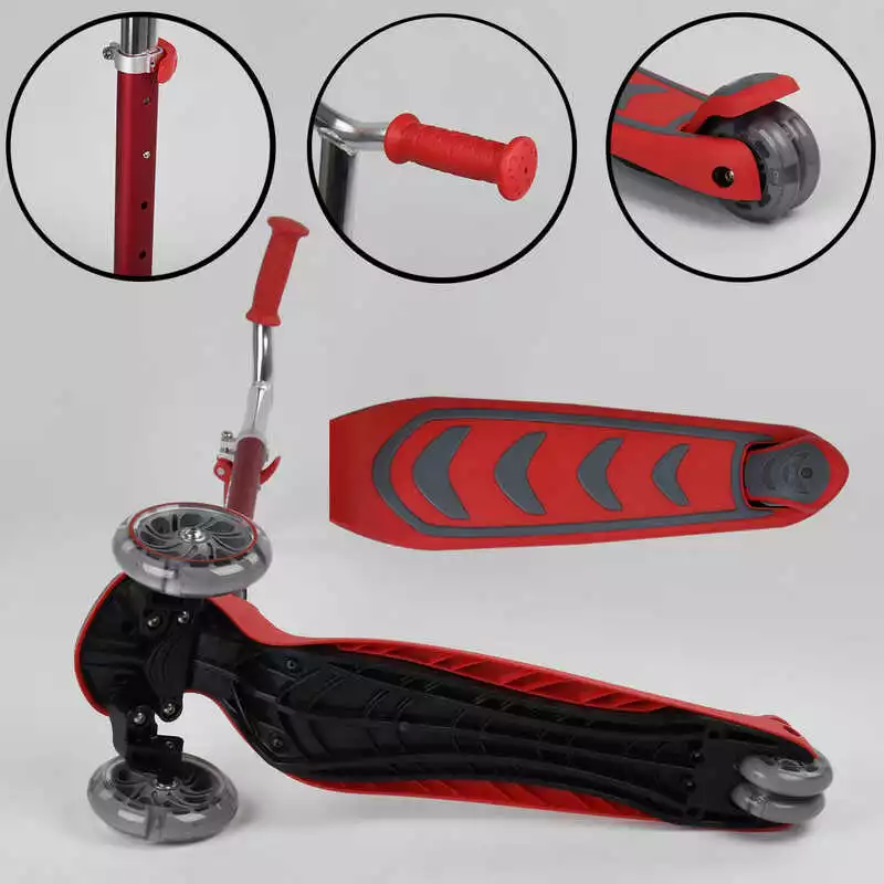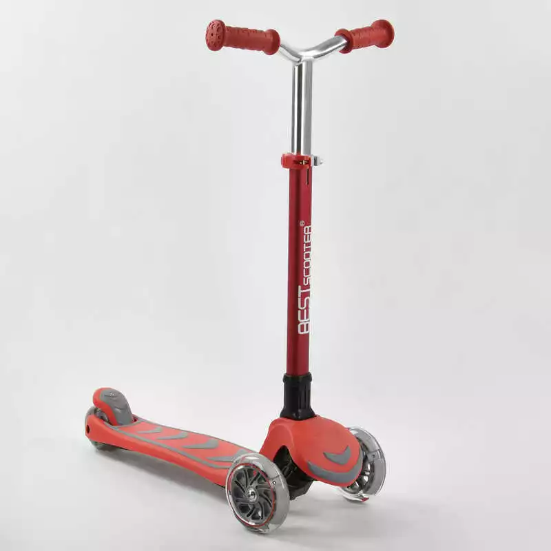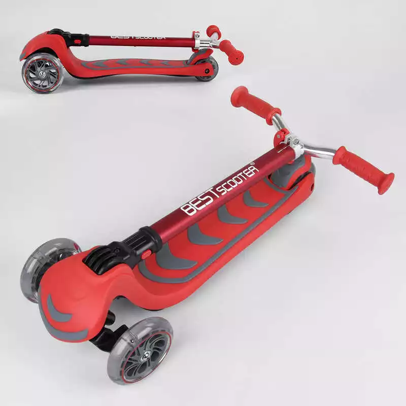 Самокат трехколесный Y-00325 (4) Best Scooter, КРАСНЫЙ, складной алюминиевый руль, 4 колеса PU со светом, d=12 см