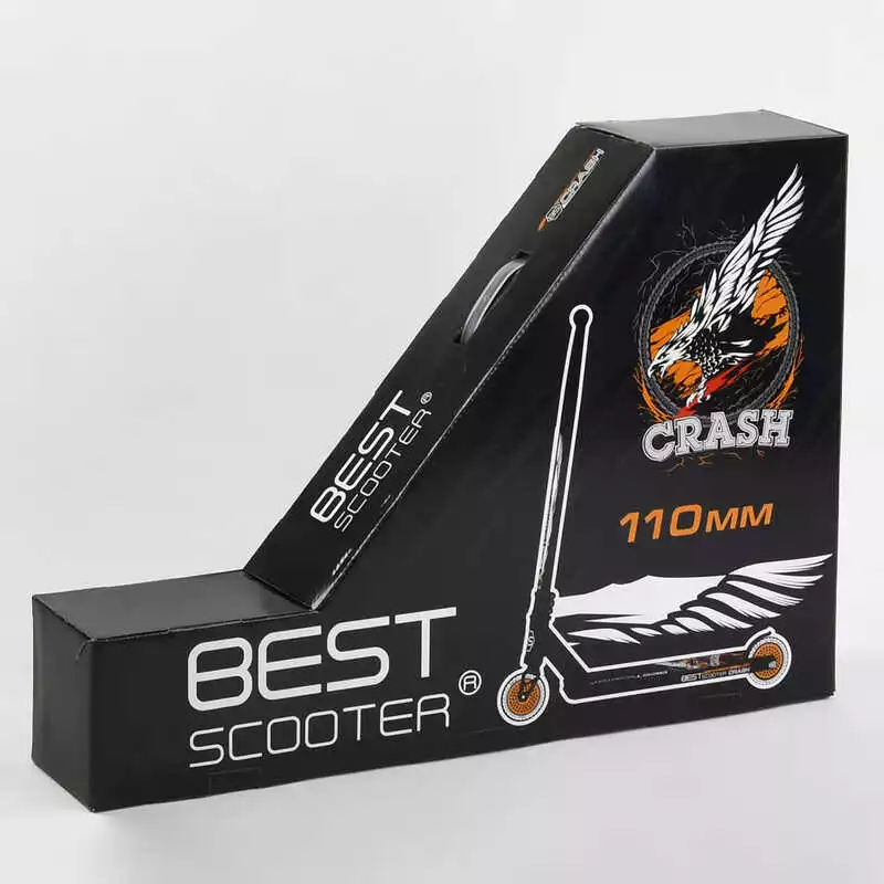 Самокат трюковый 67839 Best Scooter (4) "CRASH" HIC-система, ПЕГИ, алюминиевый диск и дека, колёса 110мм PU, ширина руля - 57 см, в коробке