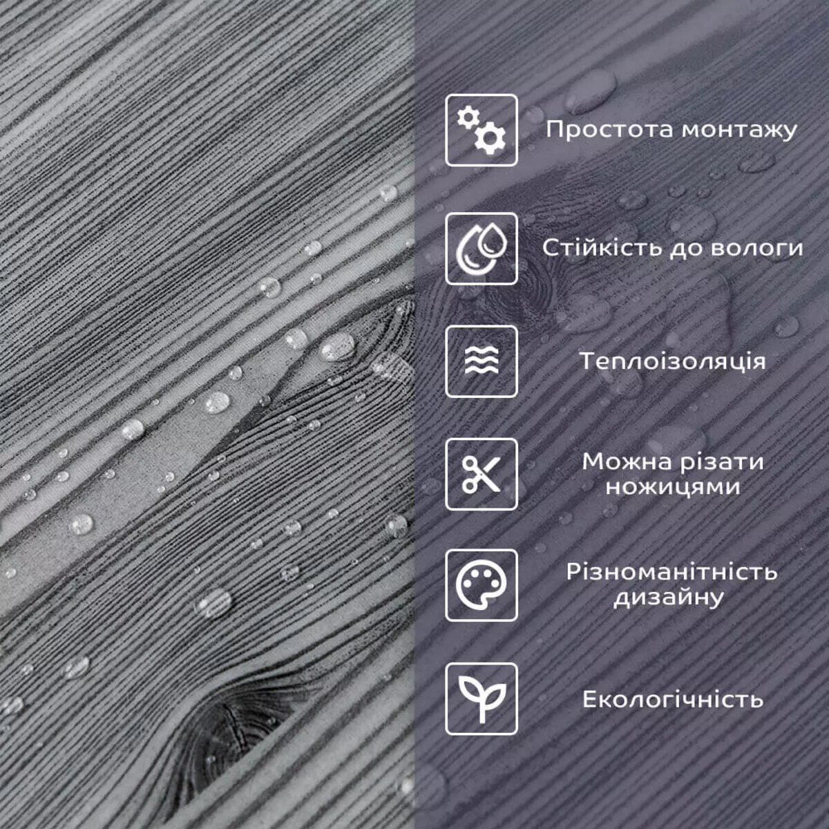 • 2. Стійкість до вологи: матеріал стійкий до впливу вологи та пари, а також до появи плісняви, що робить його придатним для використання у приміщеннях з високою вологістю, таких як ванни та кухні. Плитка підходить для створення фартуха кухні, можна клеїти біля плити на відстані не менше ніж 20-25 см;