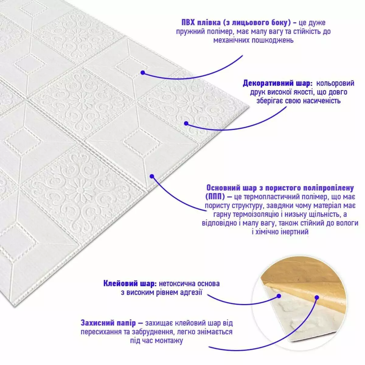 самоклеючі панелі зі спіненого поліпропілену. Це легкий, гнучкий та