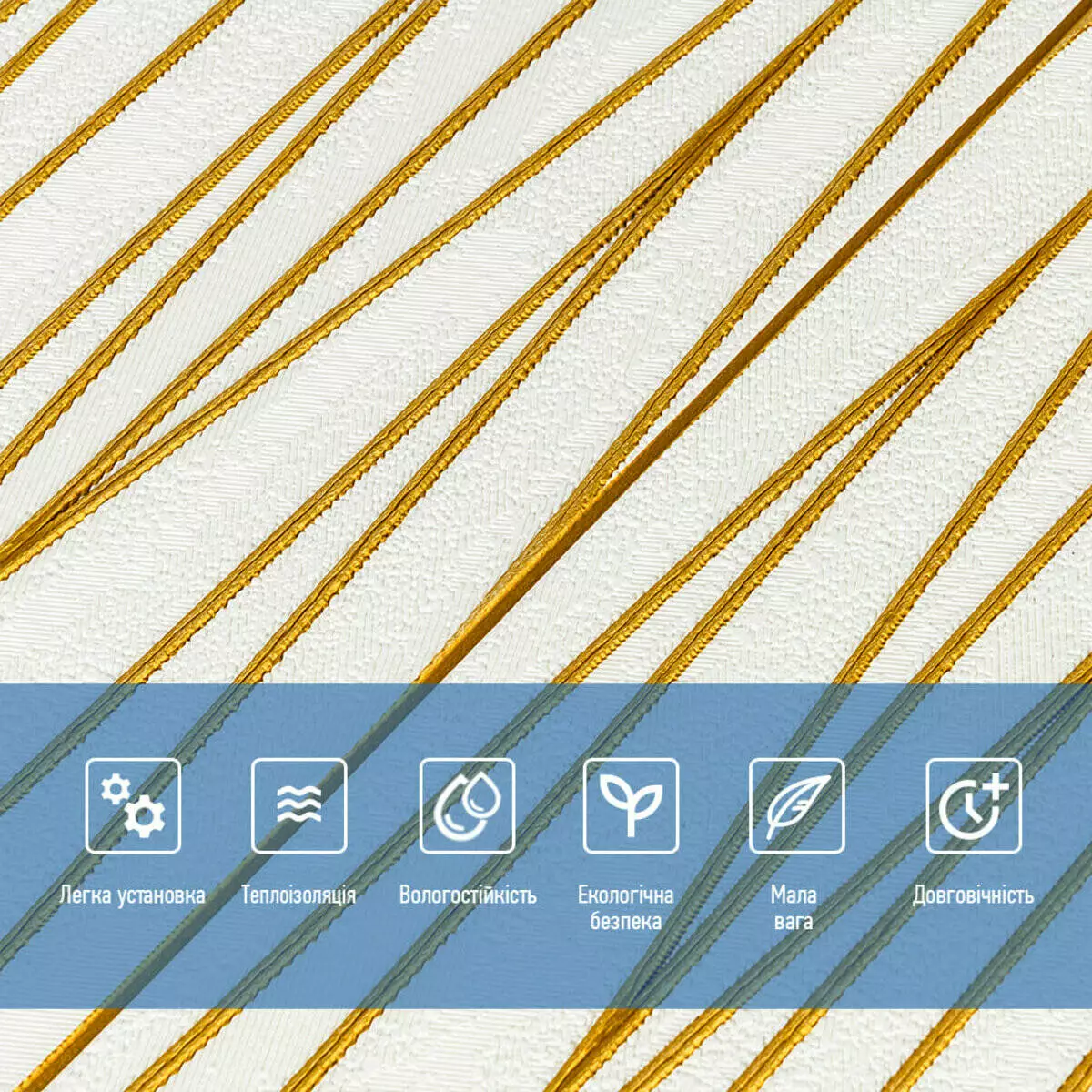 Самоклеюча 3D панель цегла золоті стрічки 700х700х5мм