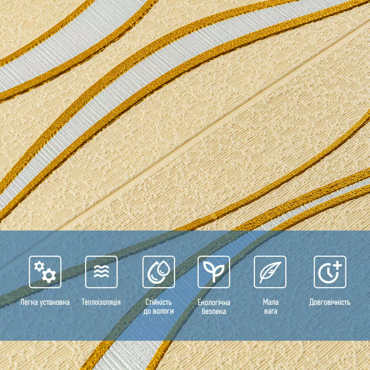 Самоклеюча 3D панель золоті хвилі 700x700x5мм