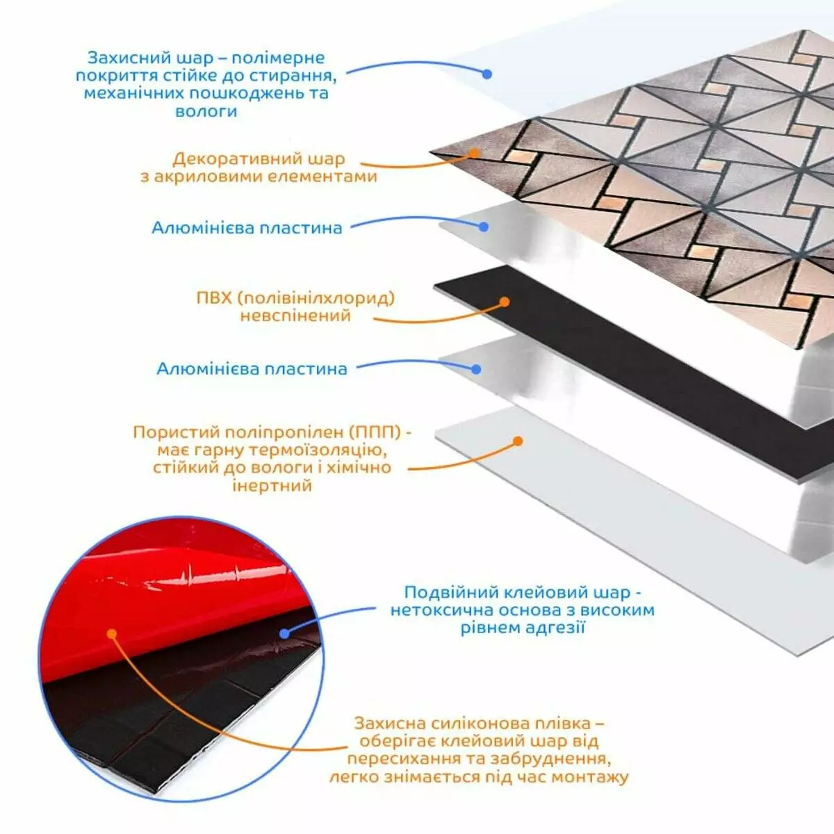- Захисний шар: полімерне покриття стійке до