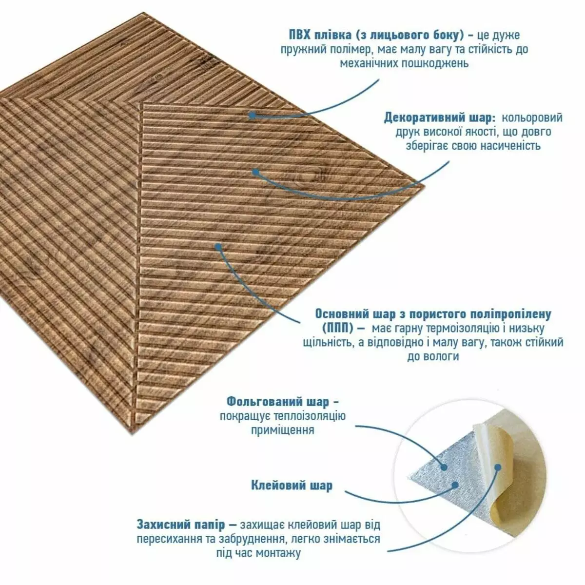 самоклеючі панелі зі спіненого поліпропілену. Це легкий, гнучкий та