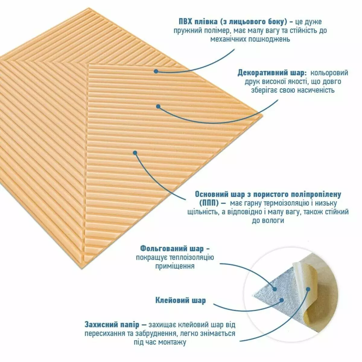 самоклеючі панелі зі спіненого поліпропілену. Це легкий, гнучкий та