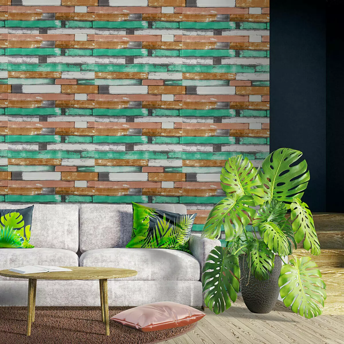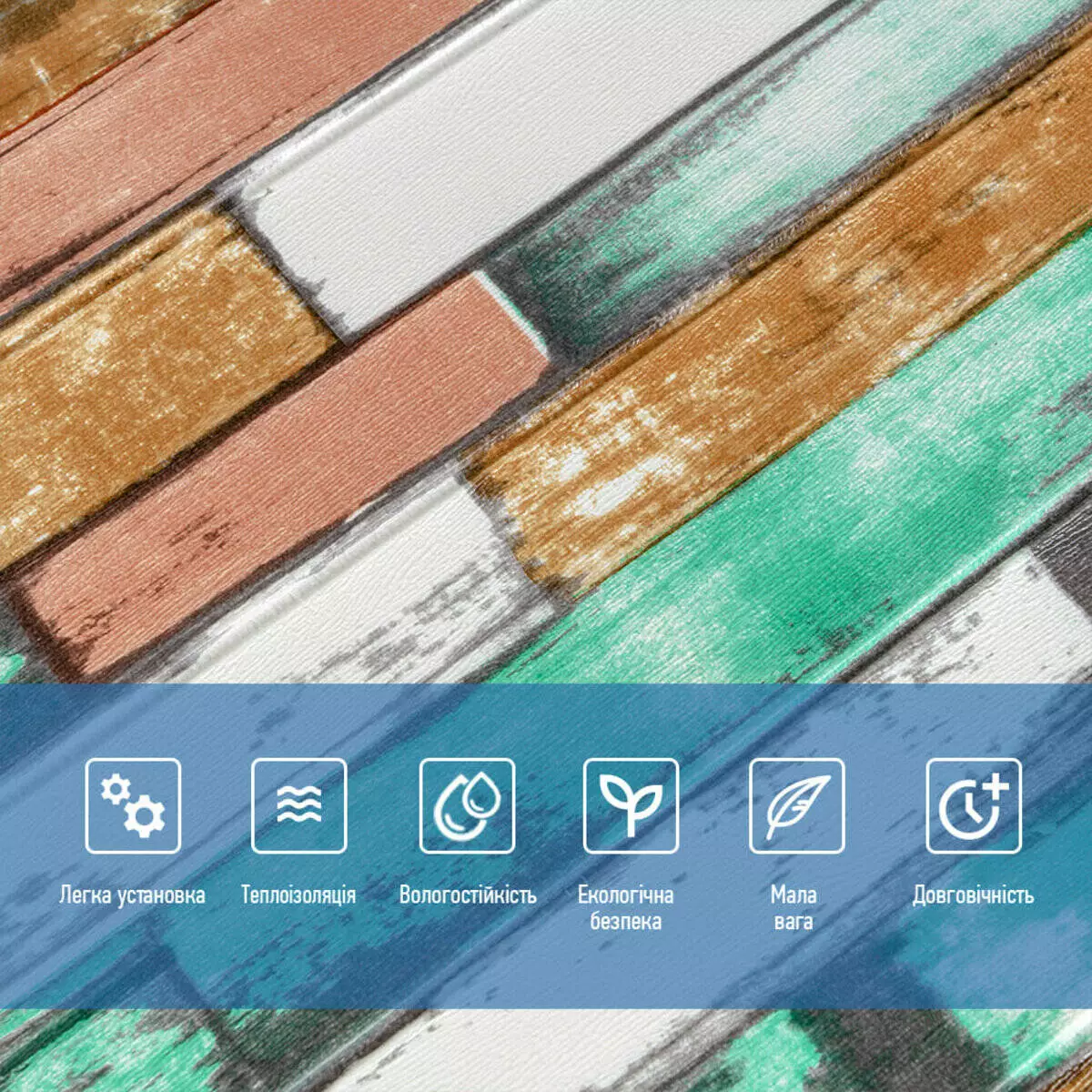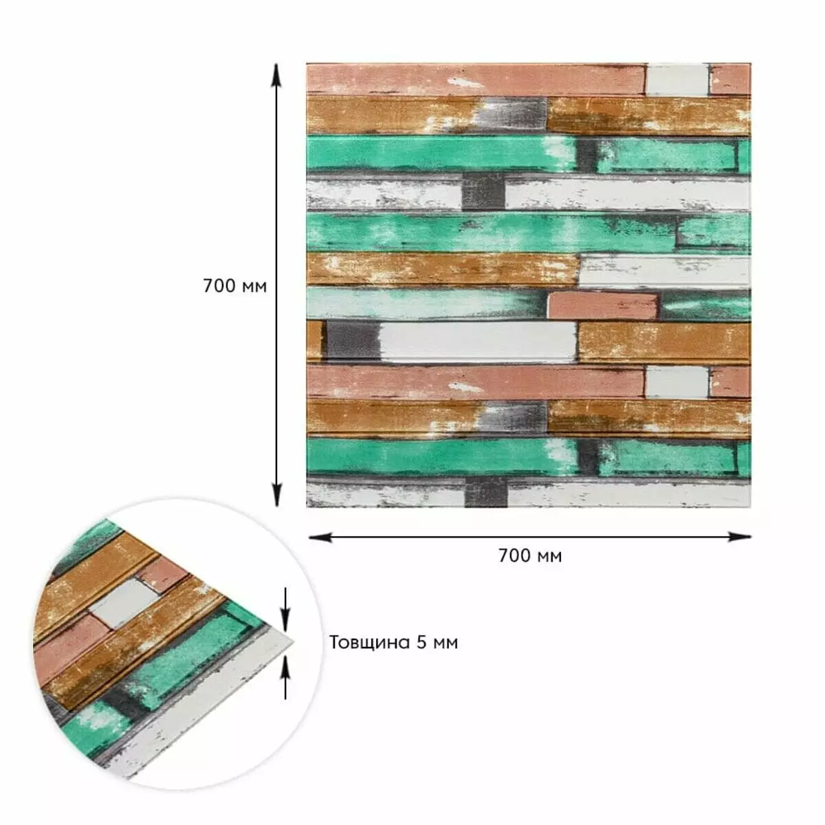 Самоклеюча декоративна 3D панель м'ятне дерево