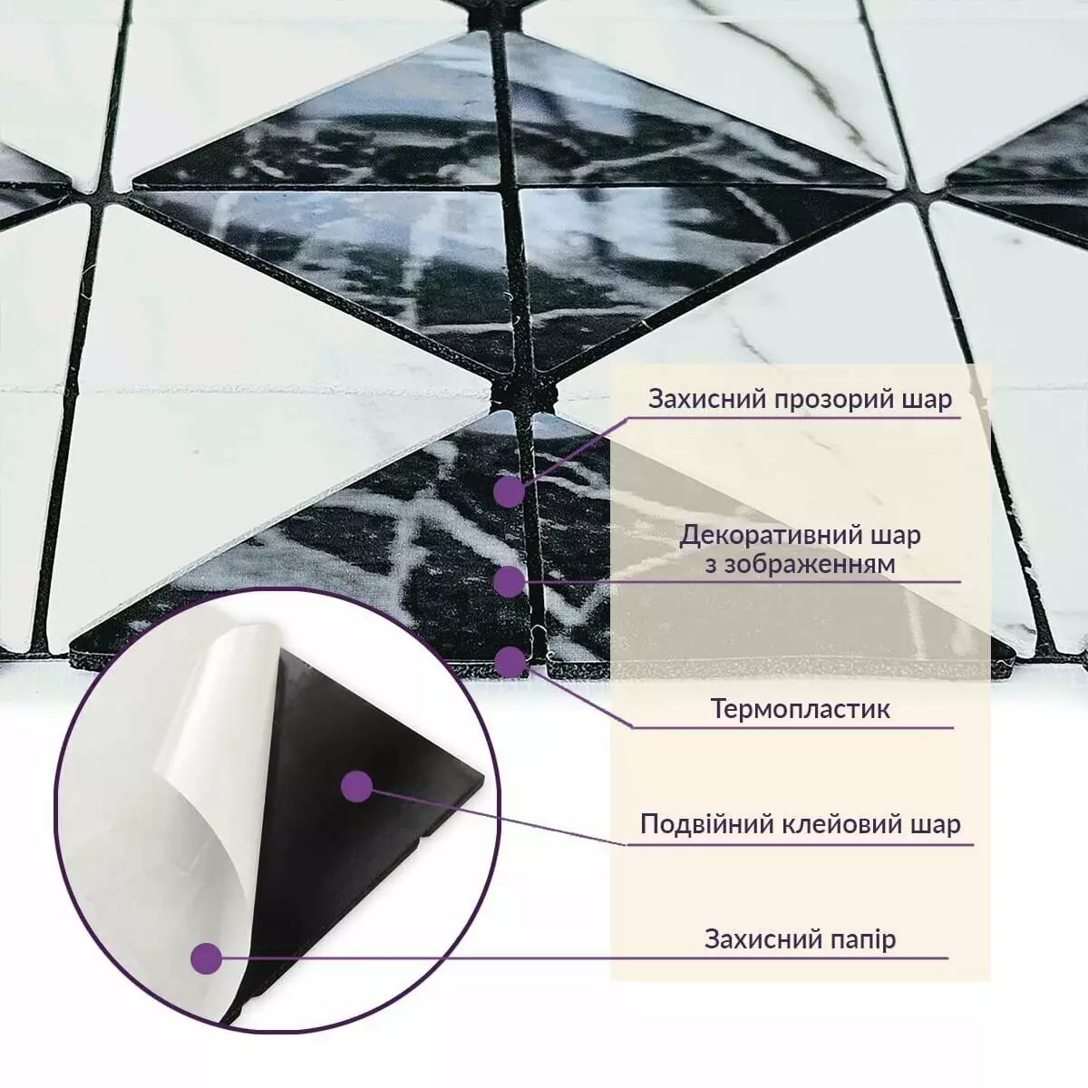 Зняти захисну плівку зі зворотного боку плитки, щоб відкрити клейку