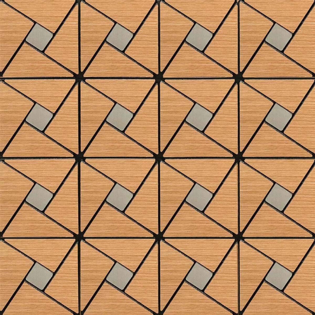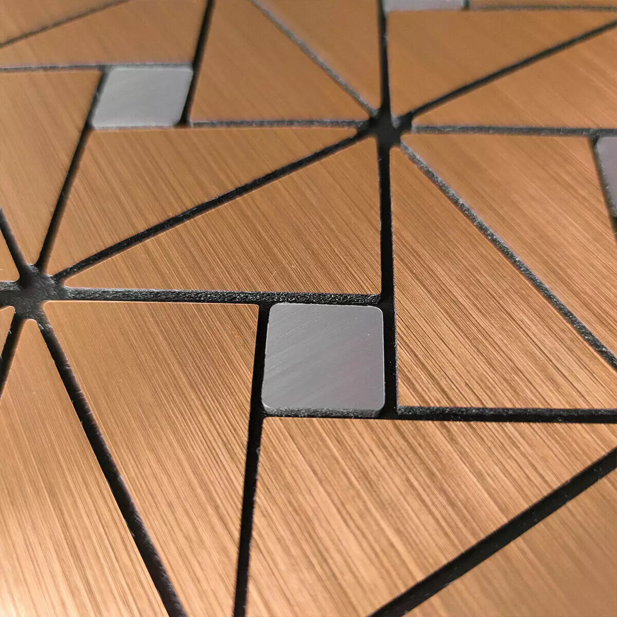 Плитка з ПЕТ (поліетилентерефталату) часто використовується для створення мозаїчних візерунків та декоративних елементів. PET - це пластичний матеріал, який має цілий ряд переваг: легкість, міцність і стійкість до впливу вологи. Цей матеріал може бути використаний для створення внутрішнього оздоблення як у житлових, так і у комерційних приміщеннях.