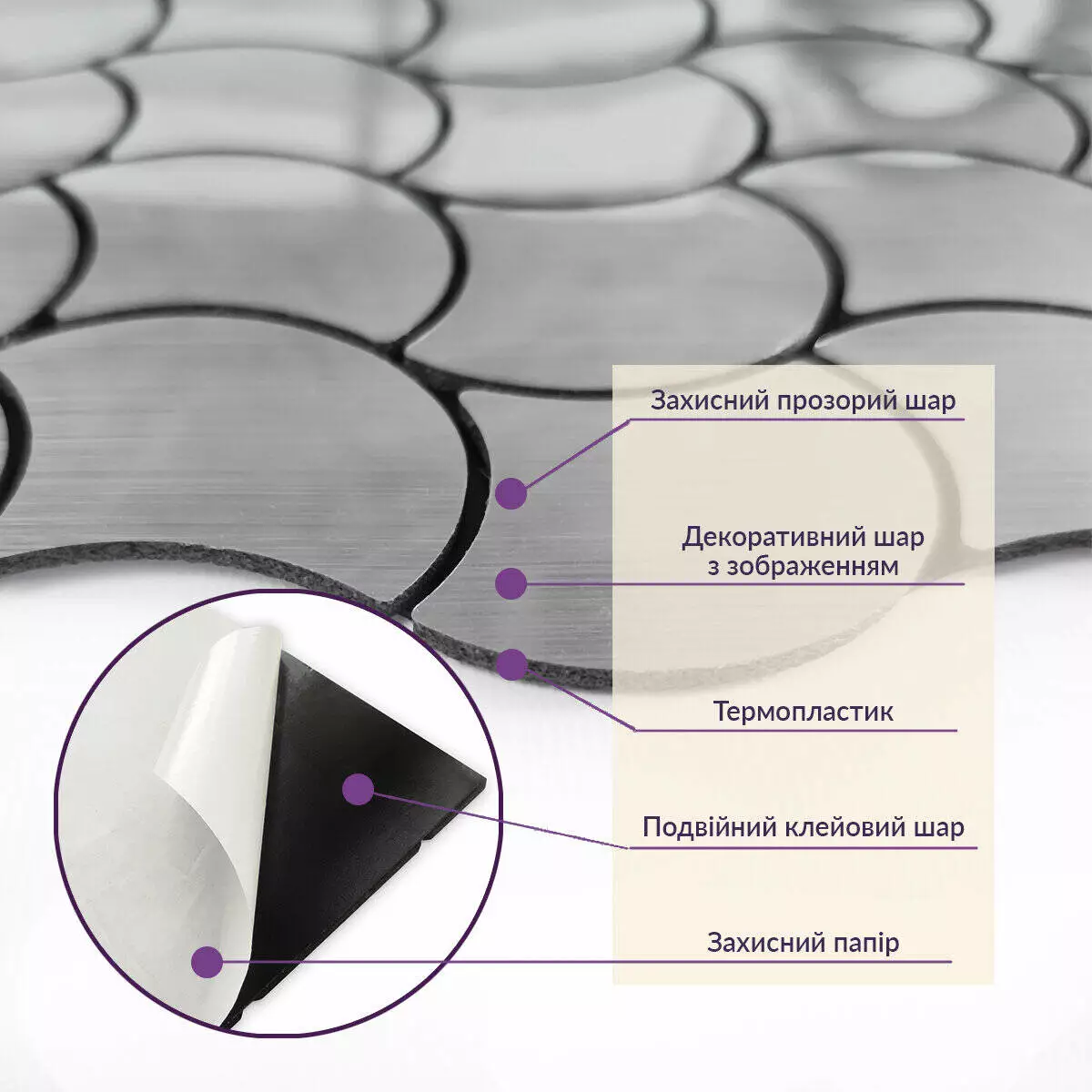 Зняти захисну плівку зі зворотного боку плитки, щоб відкрити клейку поверхню.