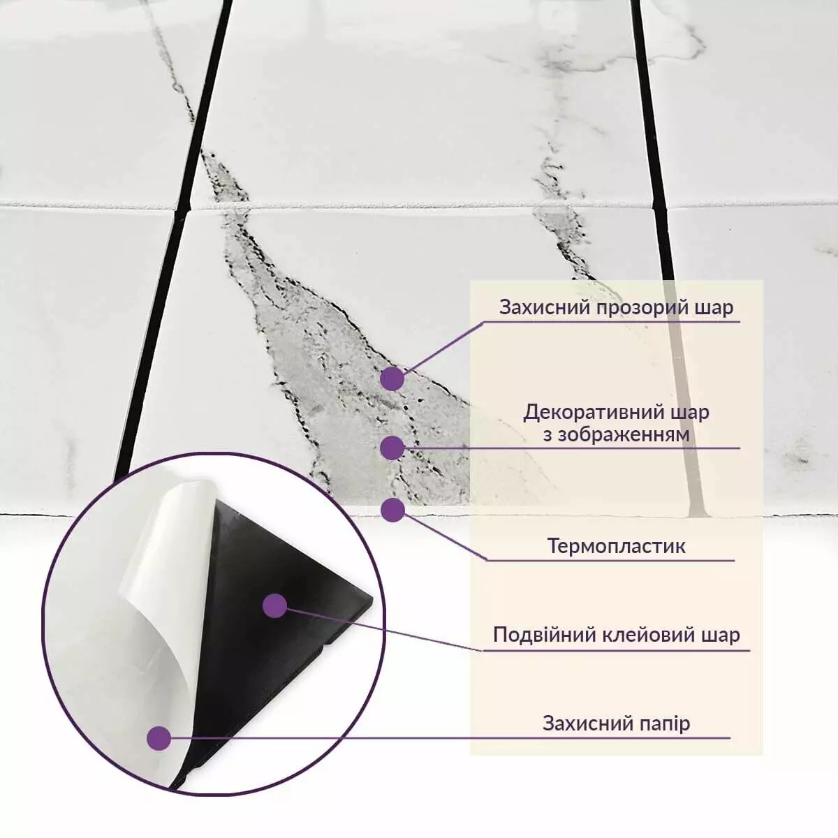 Зняти захисну плівку зі зворотного боку плитки, щоб відкрити клейку поверхню.
