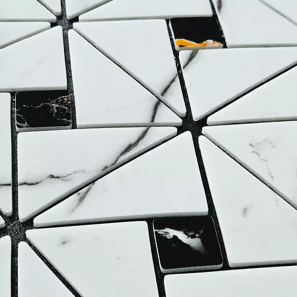 Плитка з ПЕТ (поліетилентерефталату) часто використовується для створення мозаїчних візерунків та декоративних елементів. PET - це пластичний матеріал, який має цілий ряд переваг: легкість, міцність і стійкість до впливу вологи. Цей матеріал може бути використаний для створення внутрішнього оздоблення як у житлових, так і у комерційних приміщеннях.