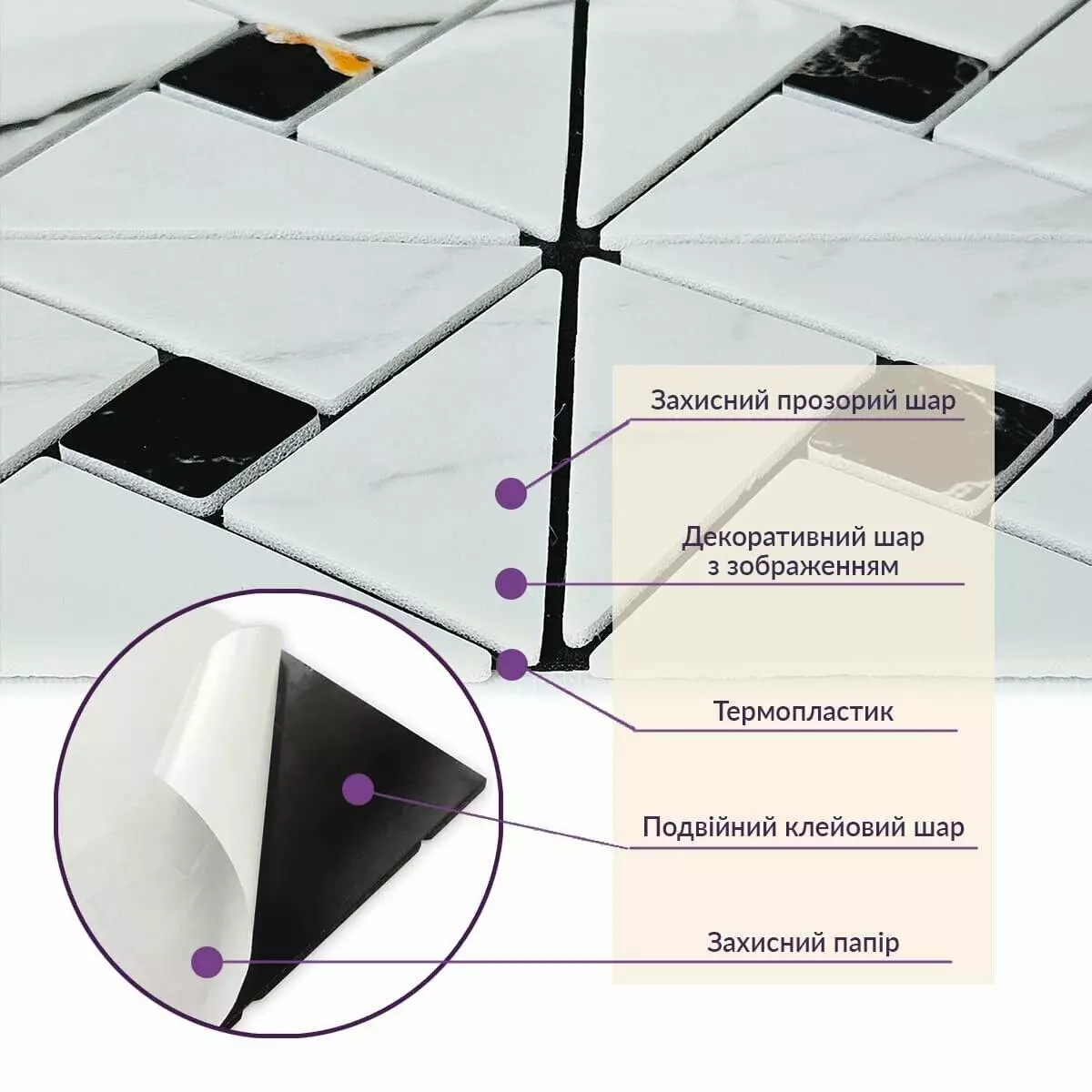 Зняти захисну плівку зі зворотного боку плитки, щоб відкрити клейку поверхню.
