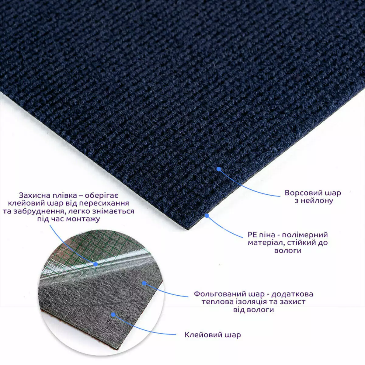 - Поступово знімати захисну плівку на звороті ковролінової