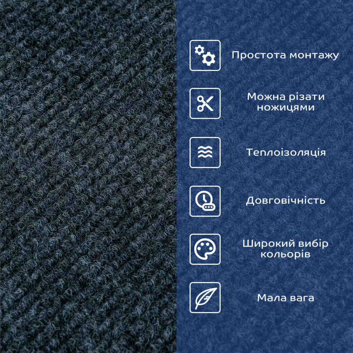 • Догляд: ковролінова плитка в рулоні легко чиститься і миється, що робить її догляд простим та зручним.
