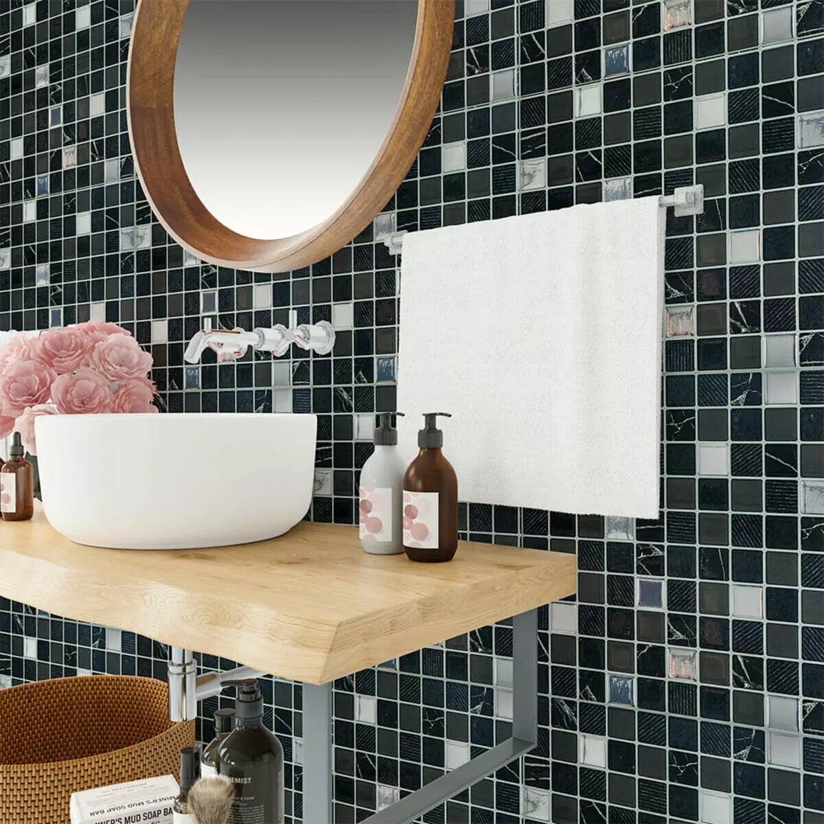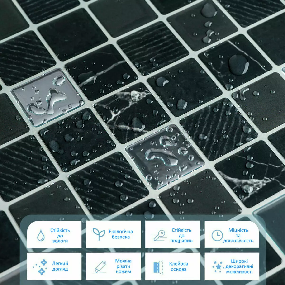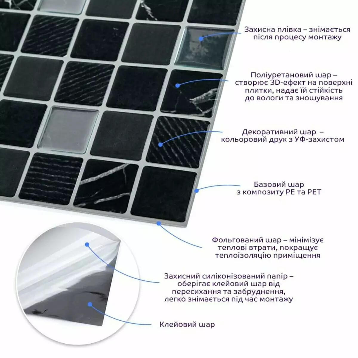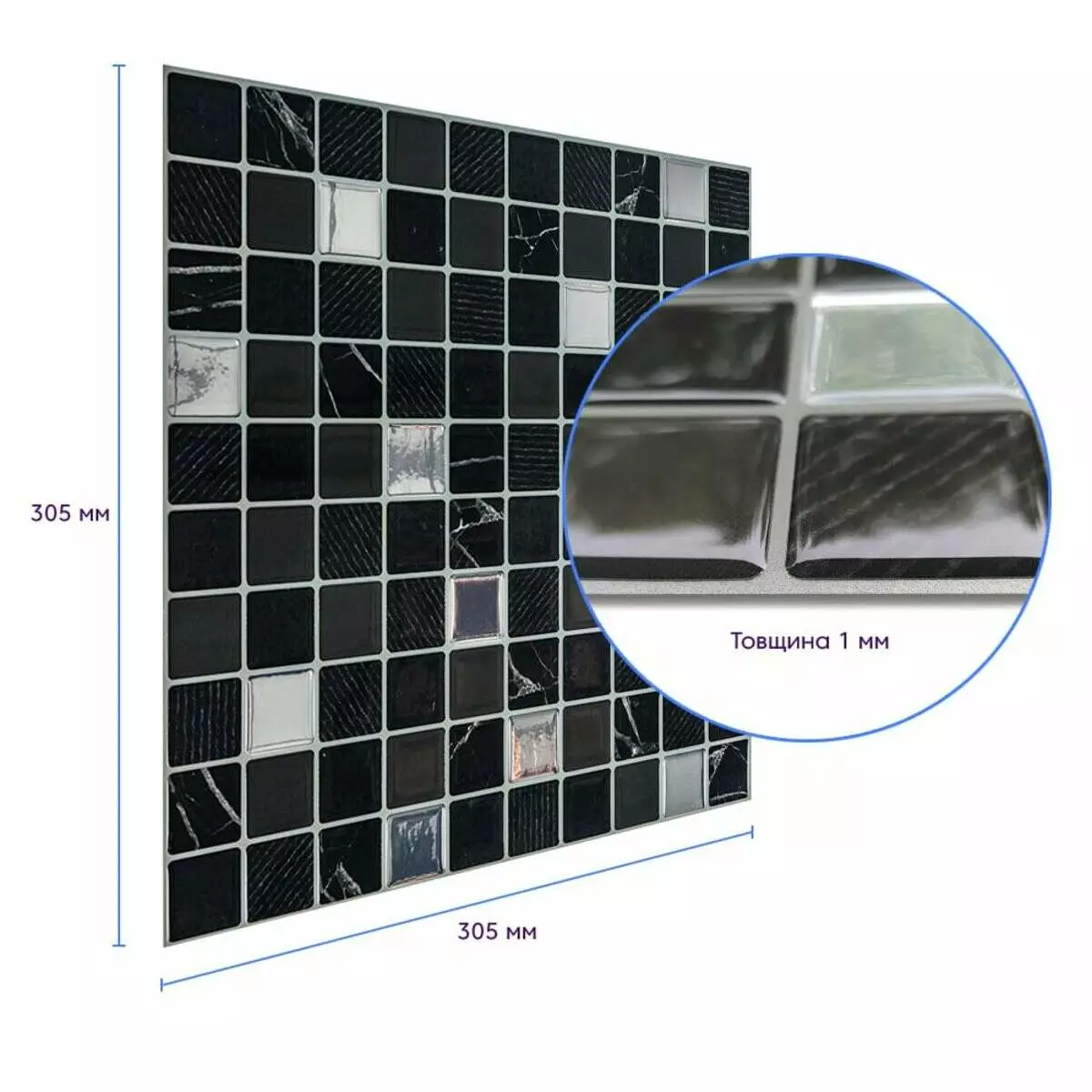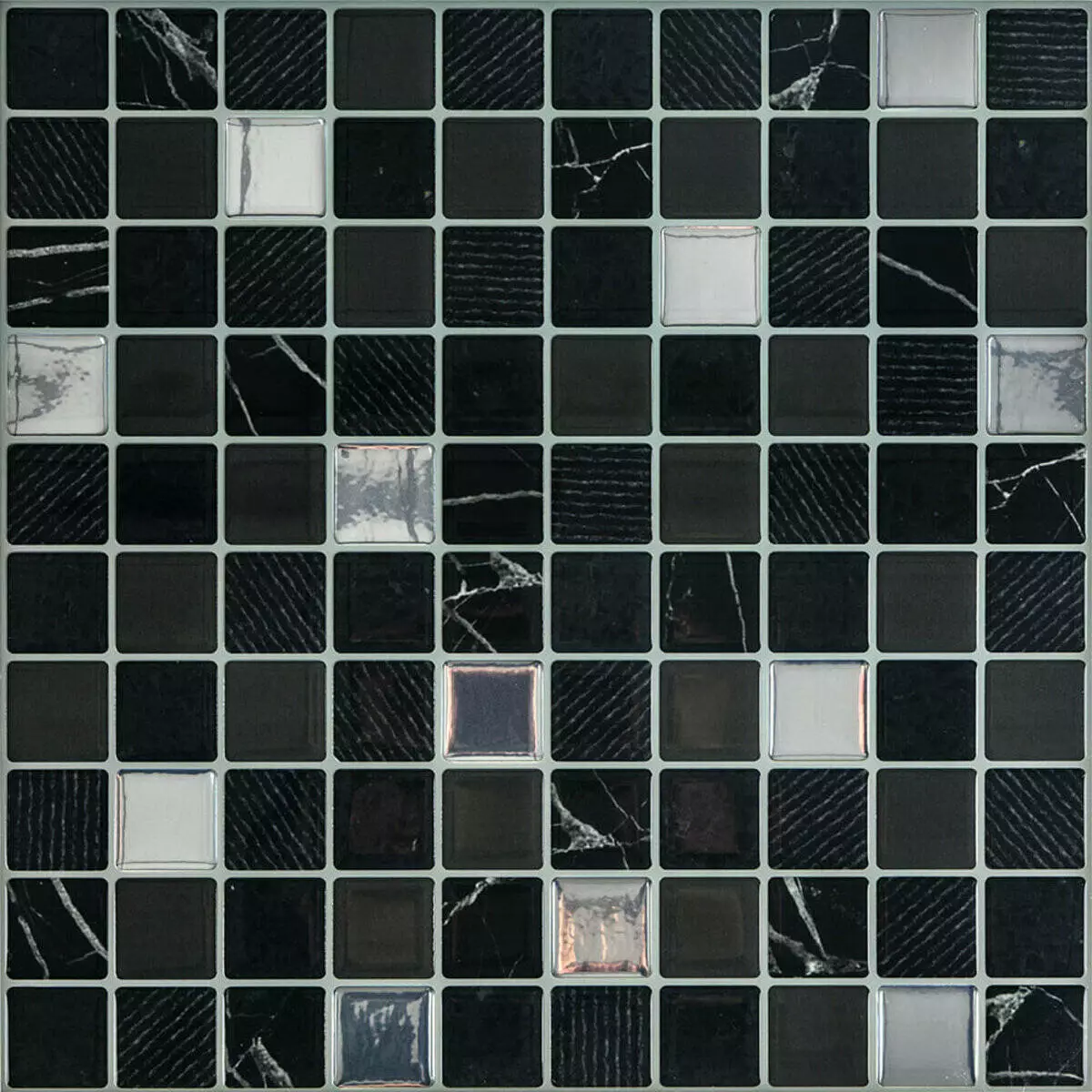 Самоклеюча поліуретанова плитка чорно-біла мозаїка 305х305х1мм (D) SW-00001149