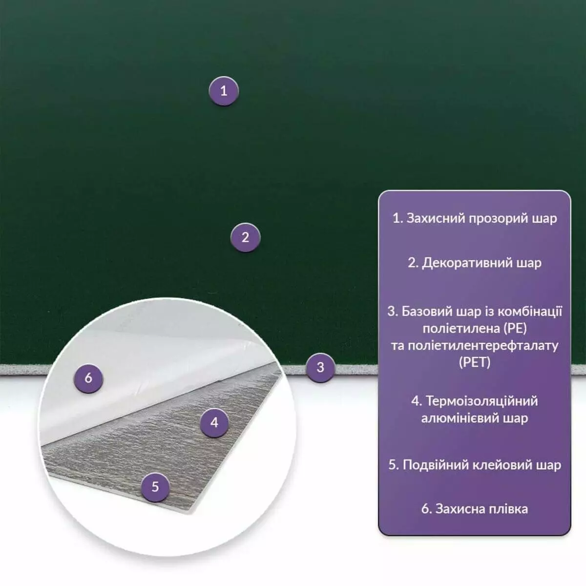 • Базовий шар з комбинації поліетилена (PE) і поліетилентерефталату (PET)