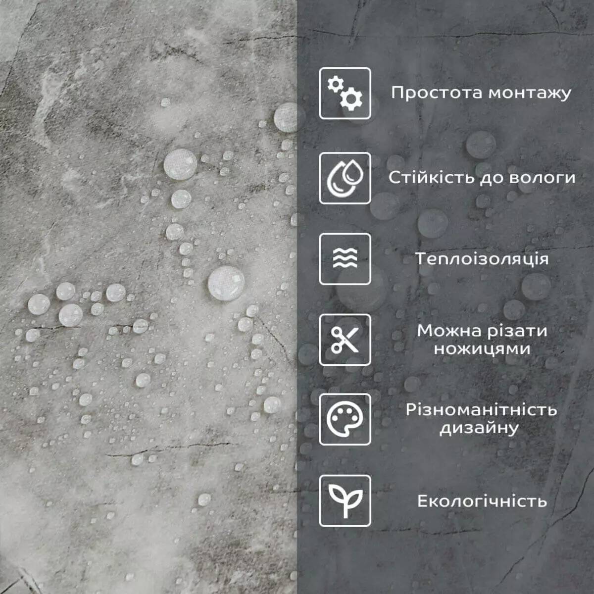 - 2. Стійкість до вологи: матеріал стійкий до впливу вологи та