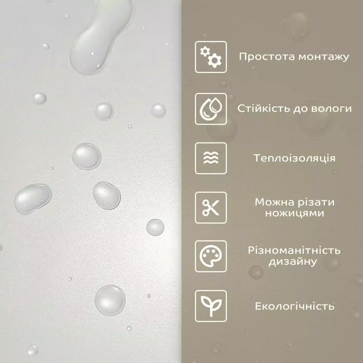 - 2. Стійкість до вологи: матеріал стійкий до впливу вологи та