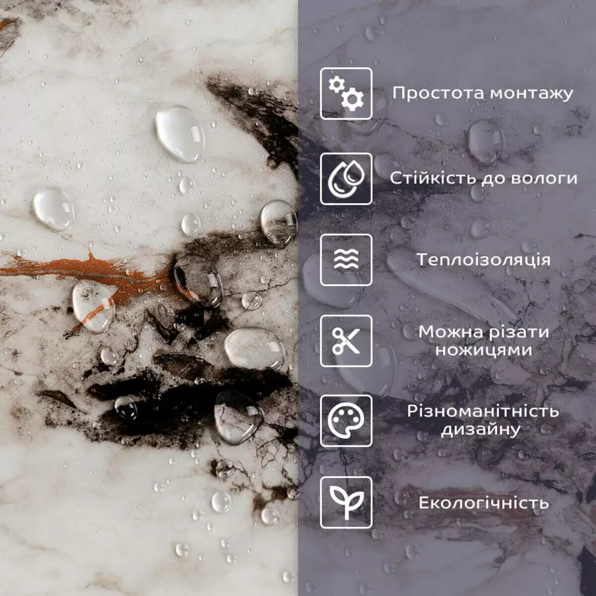 • 2. Стійкість до вологи: матеріал стійкий до впливу вологи та пари, а також до появи плісняви, що робить його придатним для використання у приміщеннях з високою вологістю, таких як ванни та кухні. Плитка підходить для створення фартуха кухні, можна клеїти біля плити на відстані не менше ніж 20-25 см;