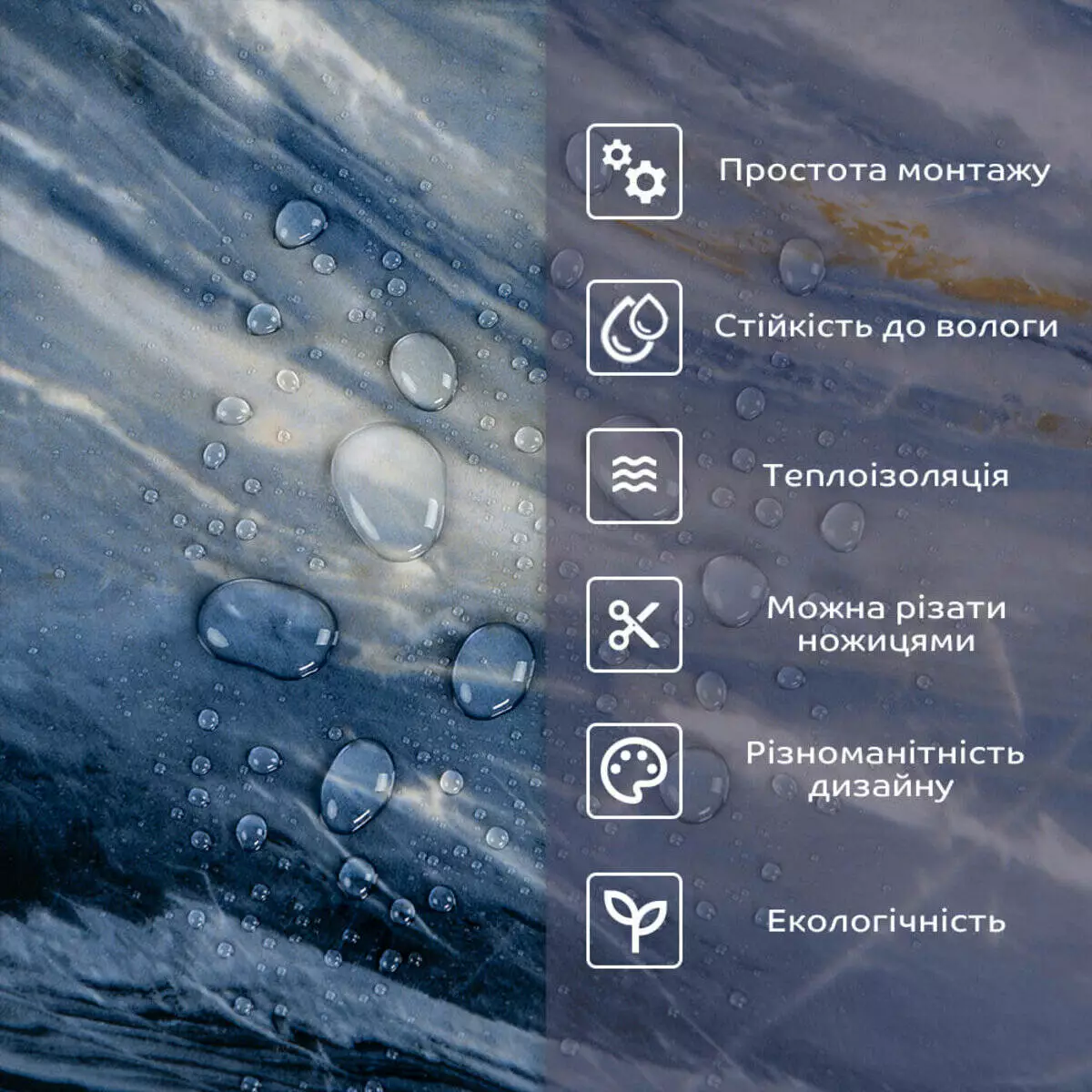 - 2. Стійкість до вологи: матеріал стійкий до впливу вологи та