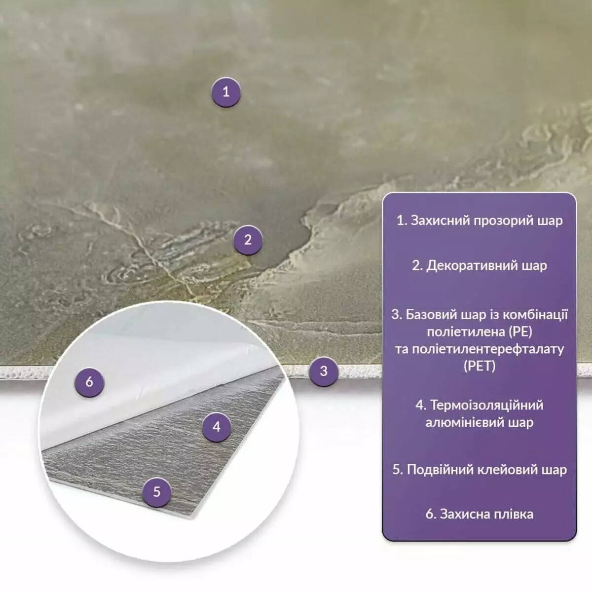 • Базовий шар з комбинації поліетилена (PE) і поліетилентерефталату (PET)