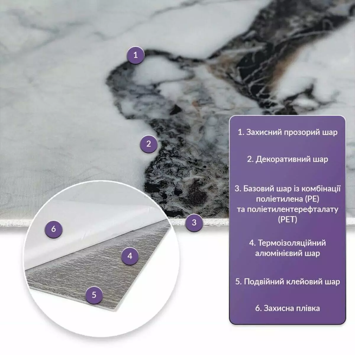 • Базовий шар з комбинації поліетилена (PE) і поліетилентерефталату (PET)