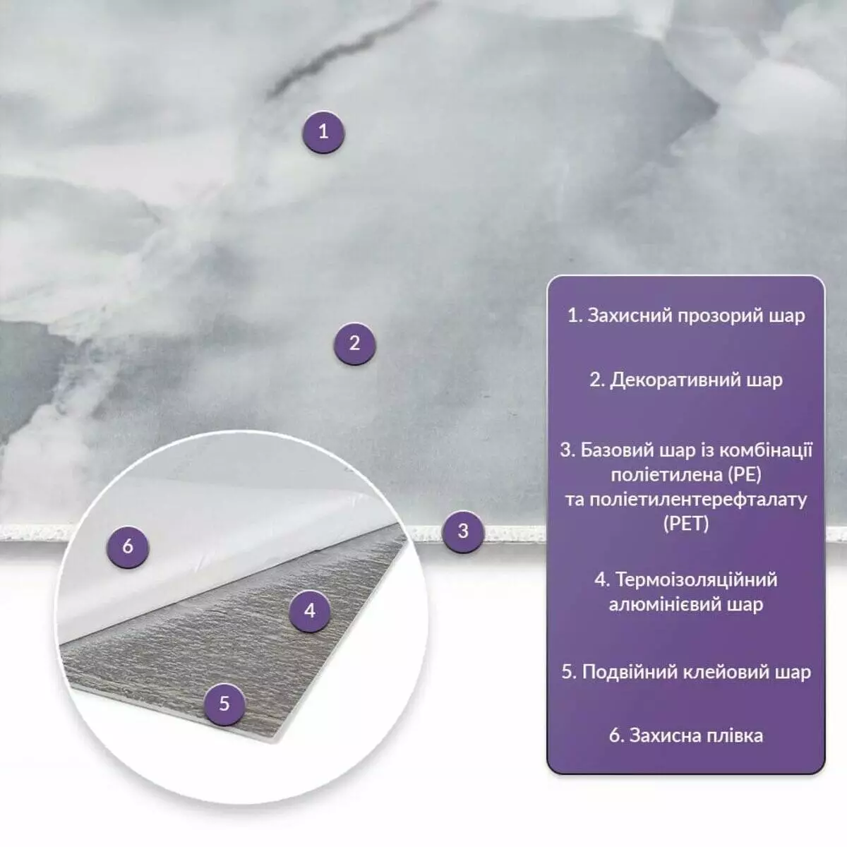 • 3. Ізоляція: плитка має звукову та теплоізоляцію завдяки наявності повітряних прошарків та додатковому алюмінієвому шару;