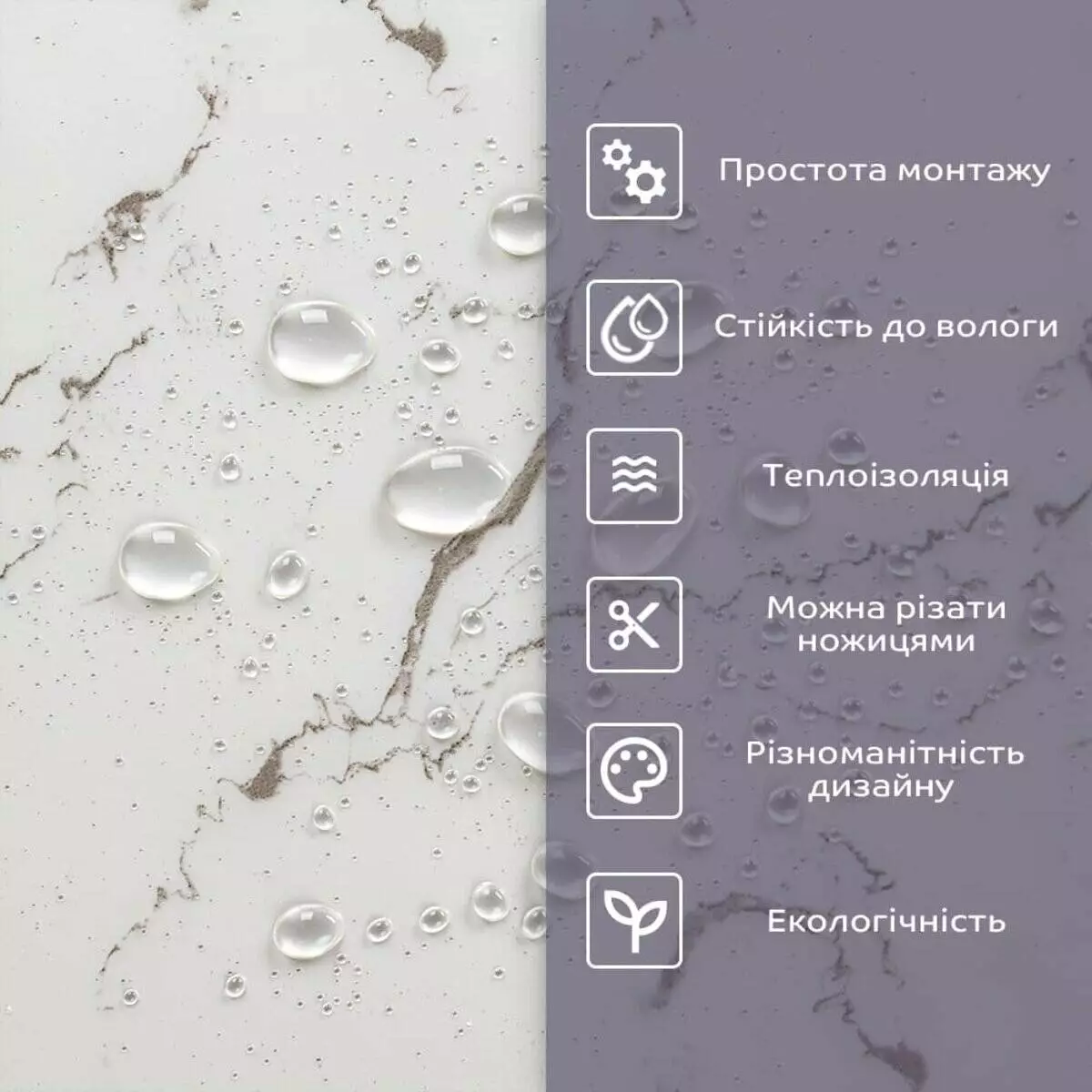 - 2. Стійкість до вологи: матеріал стійкий до впливу вологи та