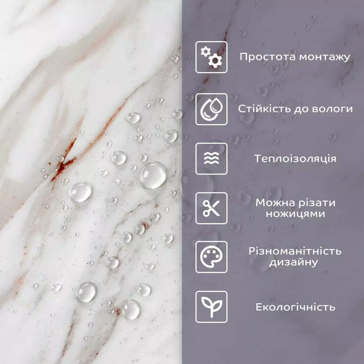 - 2. Стійкість до вологи: матеріал стійкий до впливу вологи та