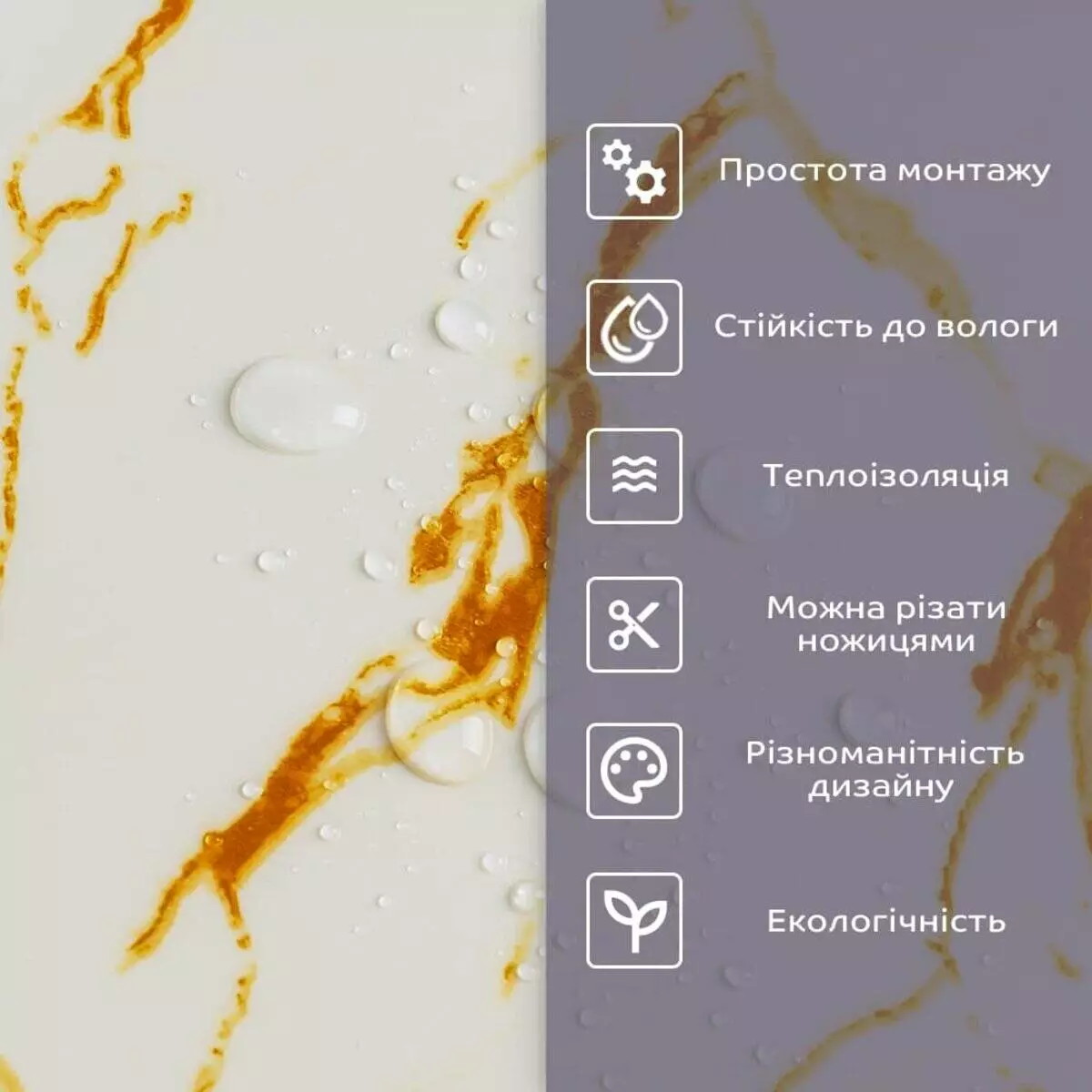 - 2. Стійкість до вологи: матеріал стійкий до впливу вологи та