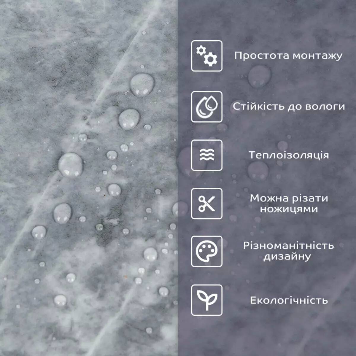 • 2. Стійкість до вологи: матеріал стійкий до впливу вологи та пари, а також до появи плісняви, що робить його придатним для використання у приміщеннях з високою вологістю, таких як ванни та кухні. Плитка підходить для створення фартуха кухні, можна клеїти біля плити на відстані не менше ніж 20-25 см;