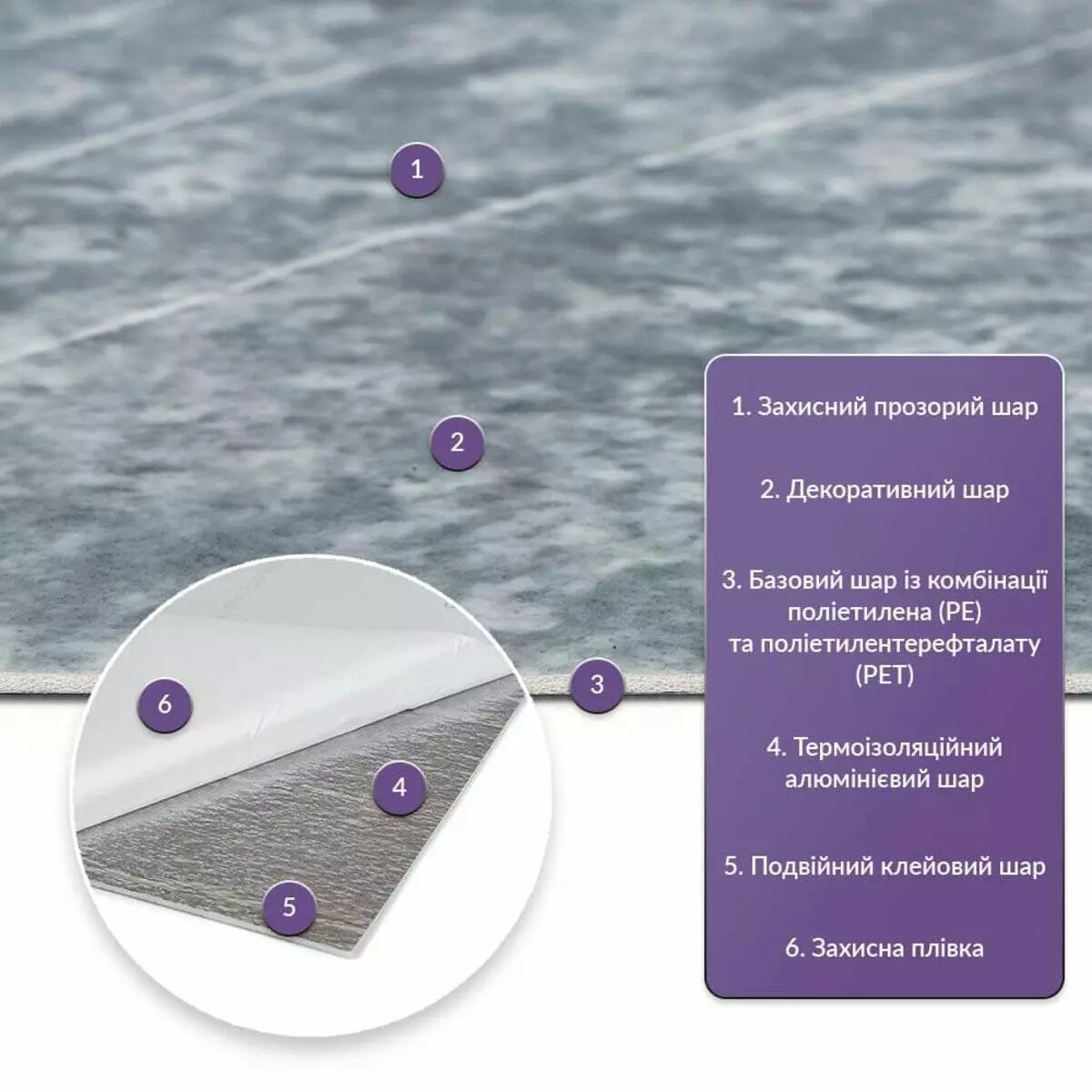 • Базовий шар з комбинації поліетилена (PE) і поліетилентерефталату (PET)