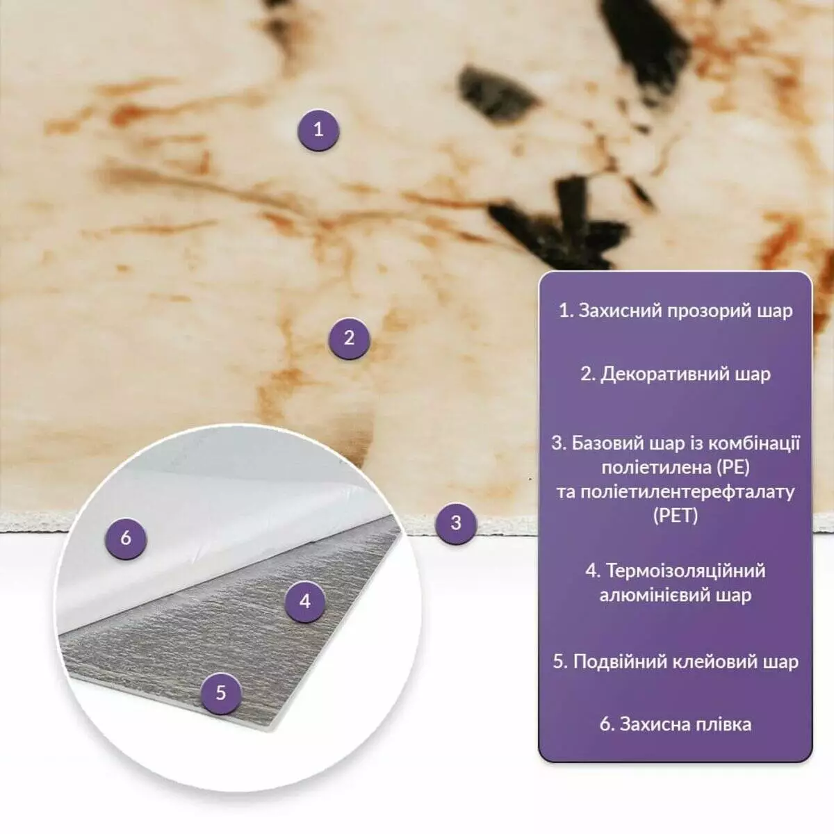 • Базовий шар з комбинації поліетилена (PE) і поліетилентерефталату (PET)