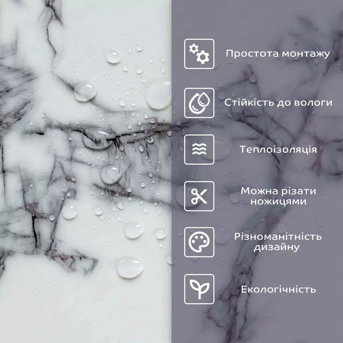 • 2. Стійкість до вологи: матеріал стійкий до впливу вологи та пари, а також до появи плісняви, що робить його придатним для використання у приміщеннях з високою вологістю, таких як ванни та кухні. Плитка підходить для створення фартуха кухні, можна клеїти біля плити на відстані не менше ніж 20-25 см;