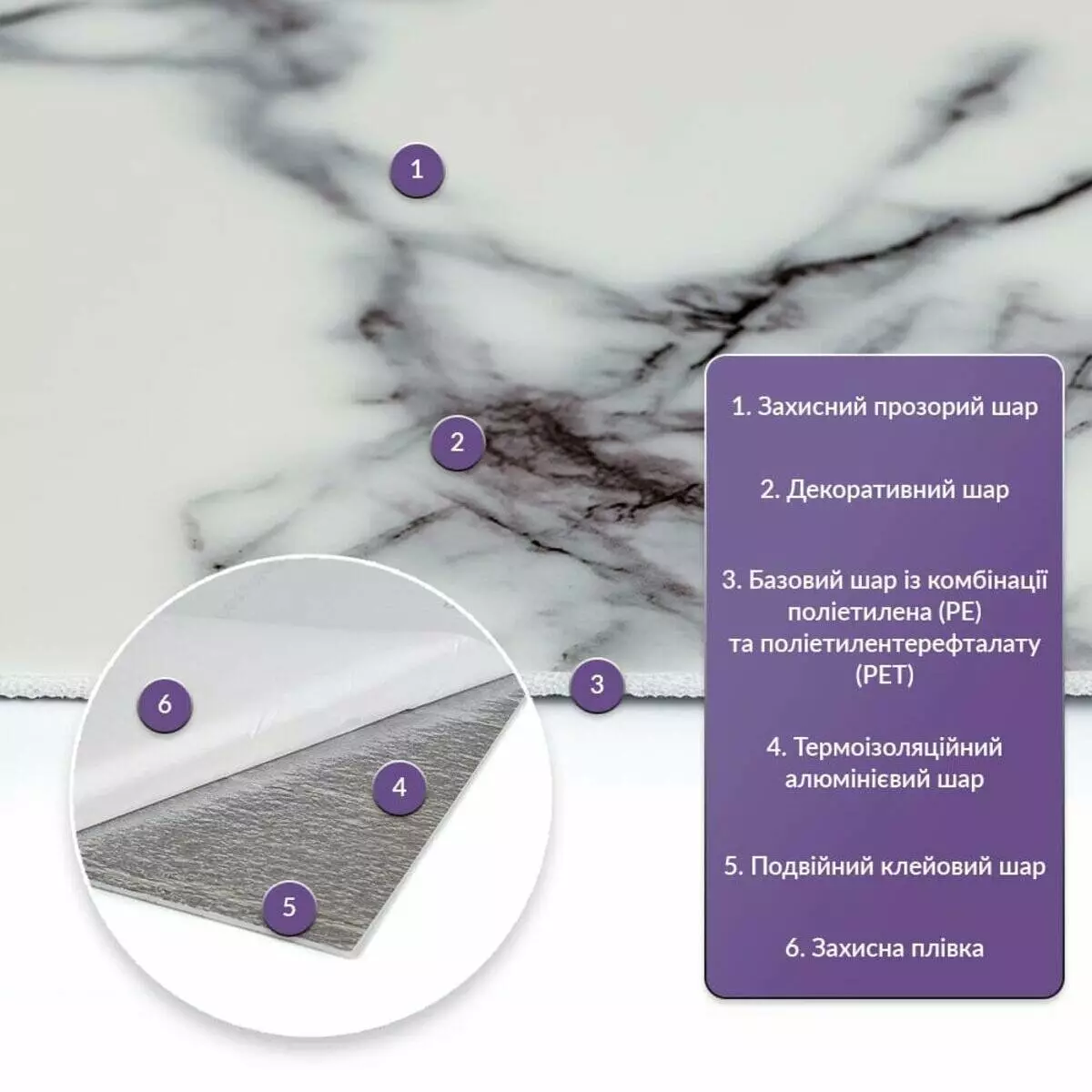 • Базовий шар з комбинації поліетилена (PE) і поліетилентерефталату (PET)