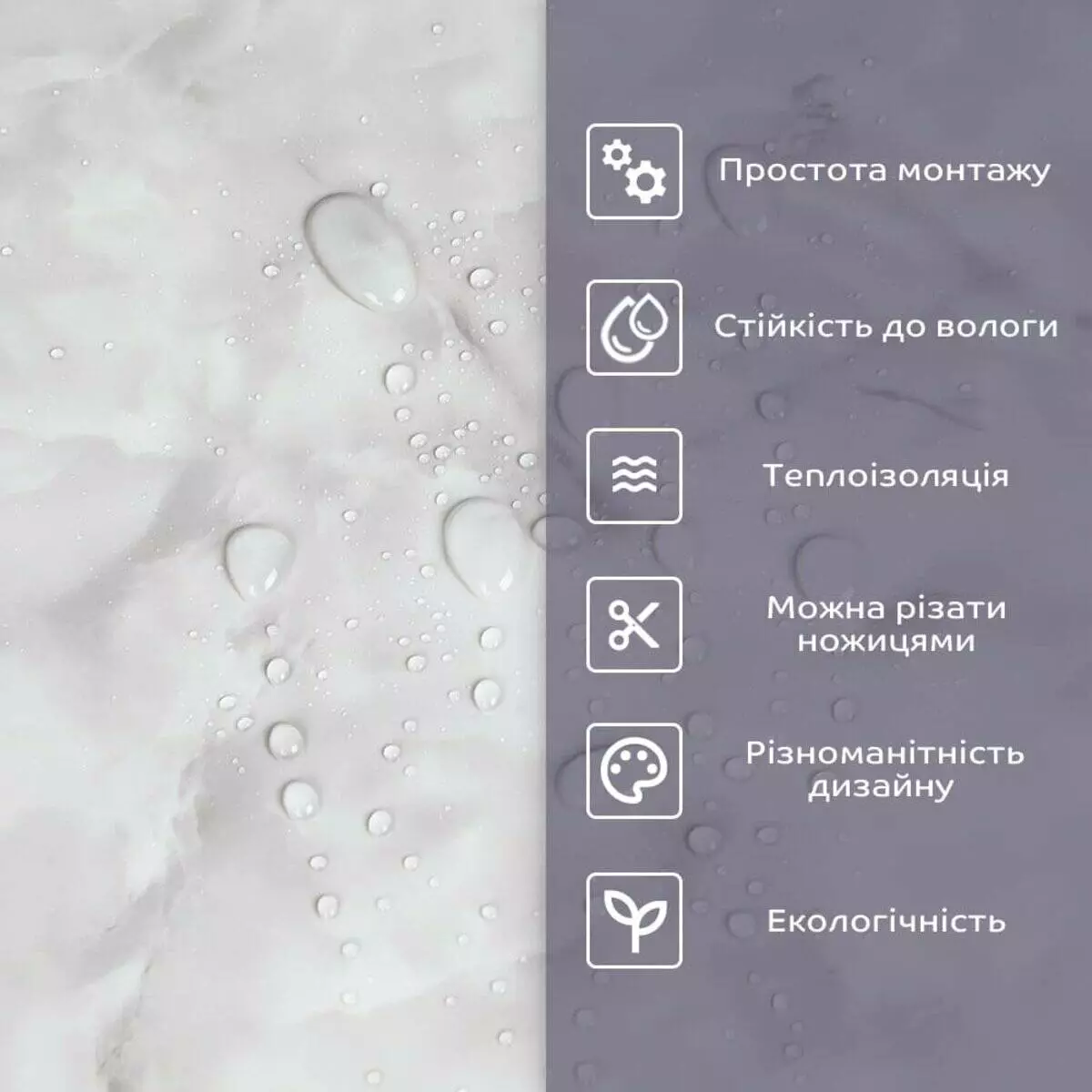 - 2. Стійкість до вологи: матеріал стійкий до впливу вологи та