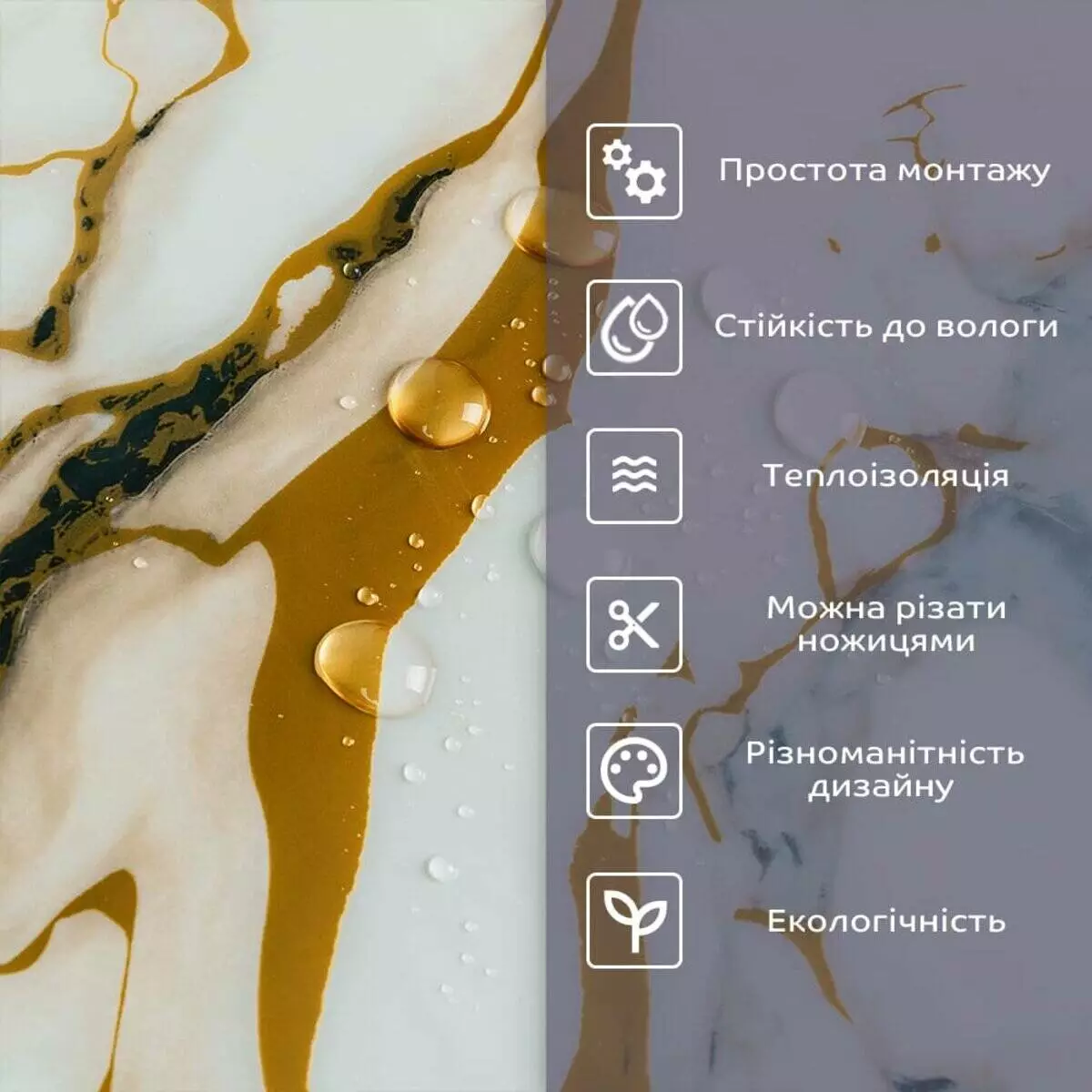 - 2. Стійкість до вологи: матеріал стійкий до впливу вологи та