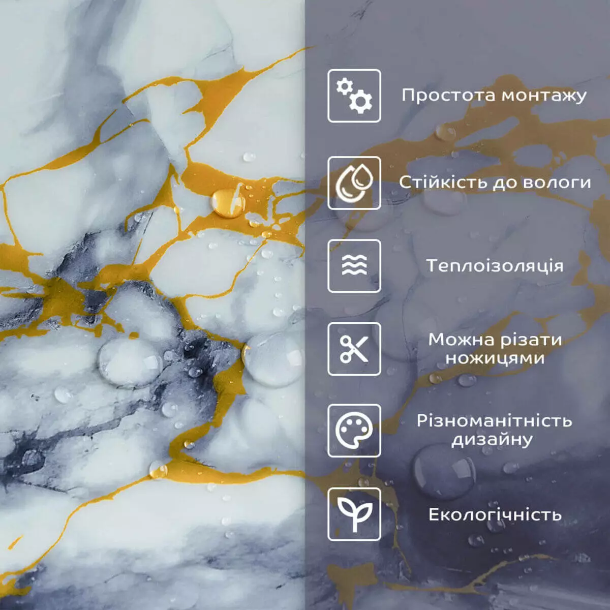 • 2. Стійкість до вологи: матеріал стійкий до впливу вологи та пари, а також до появи плісняви, що робить його придатним для використання у приміщеннях з високою вологістю, таких як ванни та кухні. Плитка підходить для створення фартуха кухні, можна клеїти біля плити на відстані не менше ніж 20-25 см;