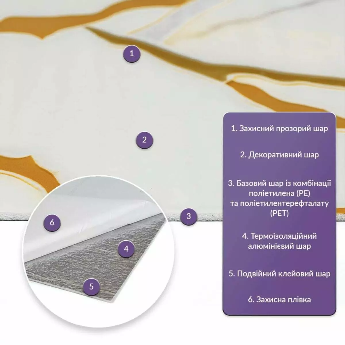 • Базовий шар з комбинації поліетилена (PE) і поліетилентерефталату (PET)