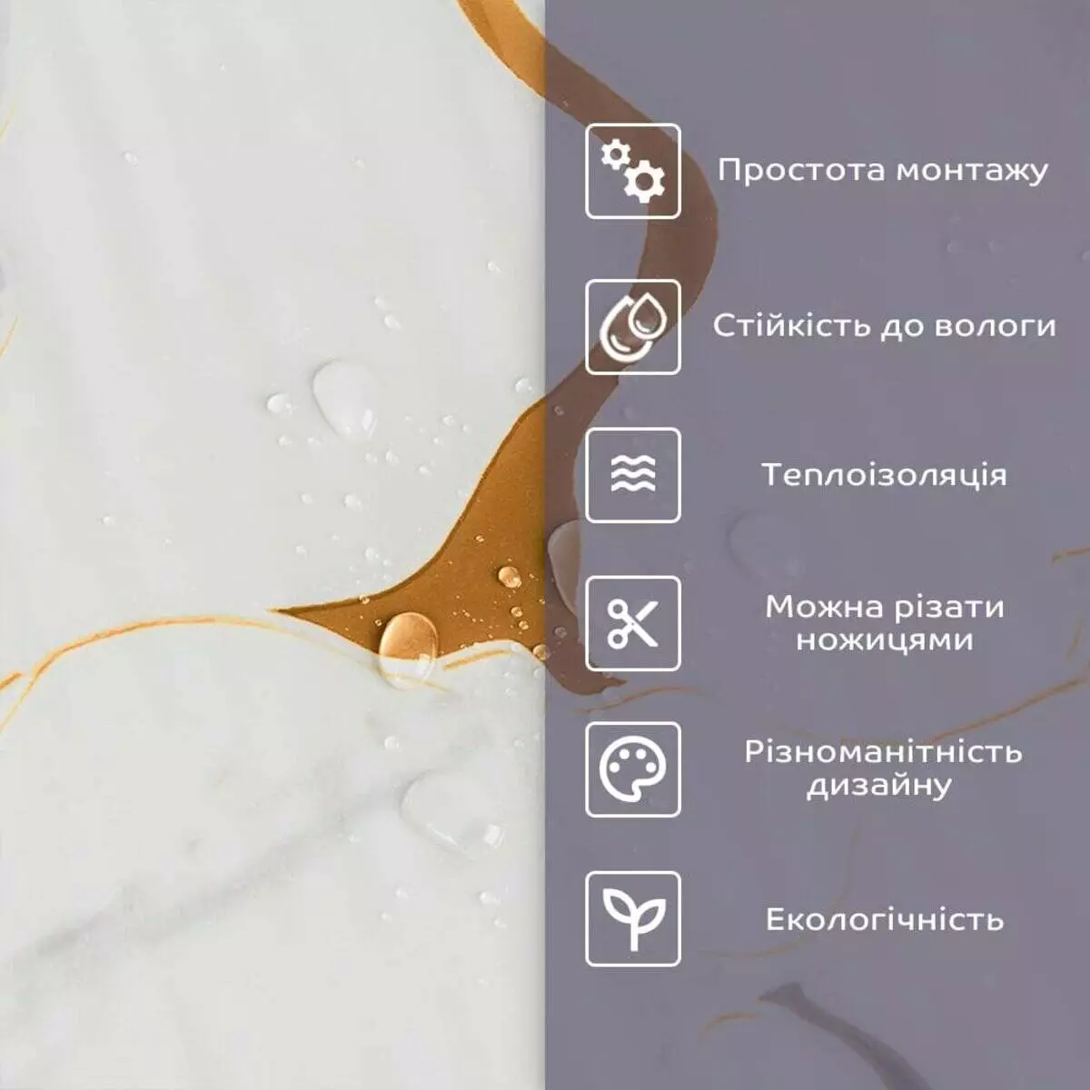 • 2. Стійкість до вологи: матеріал стійкий до впливу вологи та пари, а також до появи плісняви, що робить його придатним для використання у приміщеннях з високою вологістю, таких як ванни та кухні. Плитка підходить для створення фартуха кухні, можна клеїти біля плити на відстані не менше ніж 20-25 см;