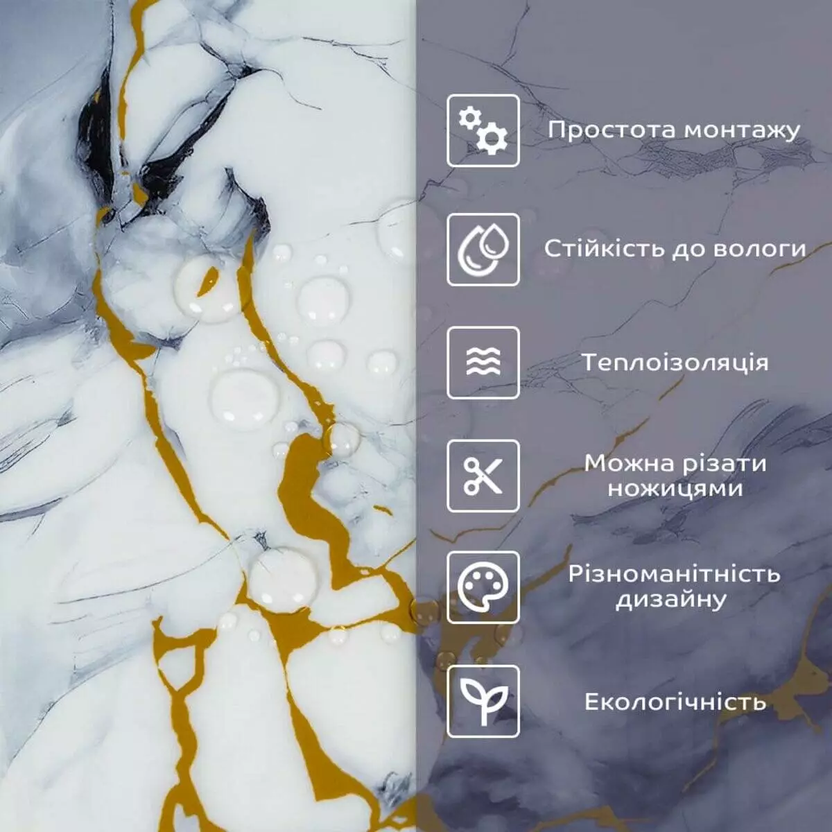 • 2. Стійкість до вологи: матеріал стійкий до впливу вологи та пари, а також до появи плісняви, що робить його придатним для використання у приміщеннях з високою вологістю, таких як ванни та кухні. Плитка підходить для створення фартуха кухні, можна клеїти біля плити на відстані не менше ніж 20-25 см;