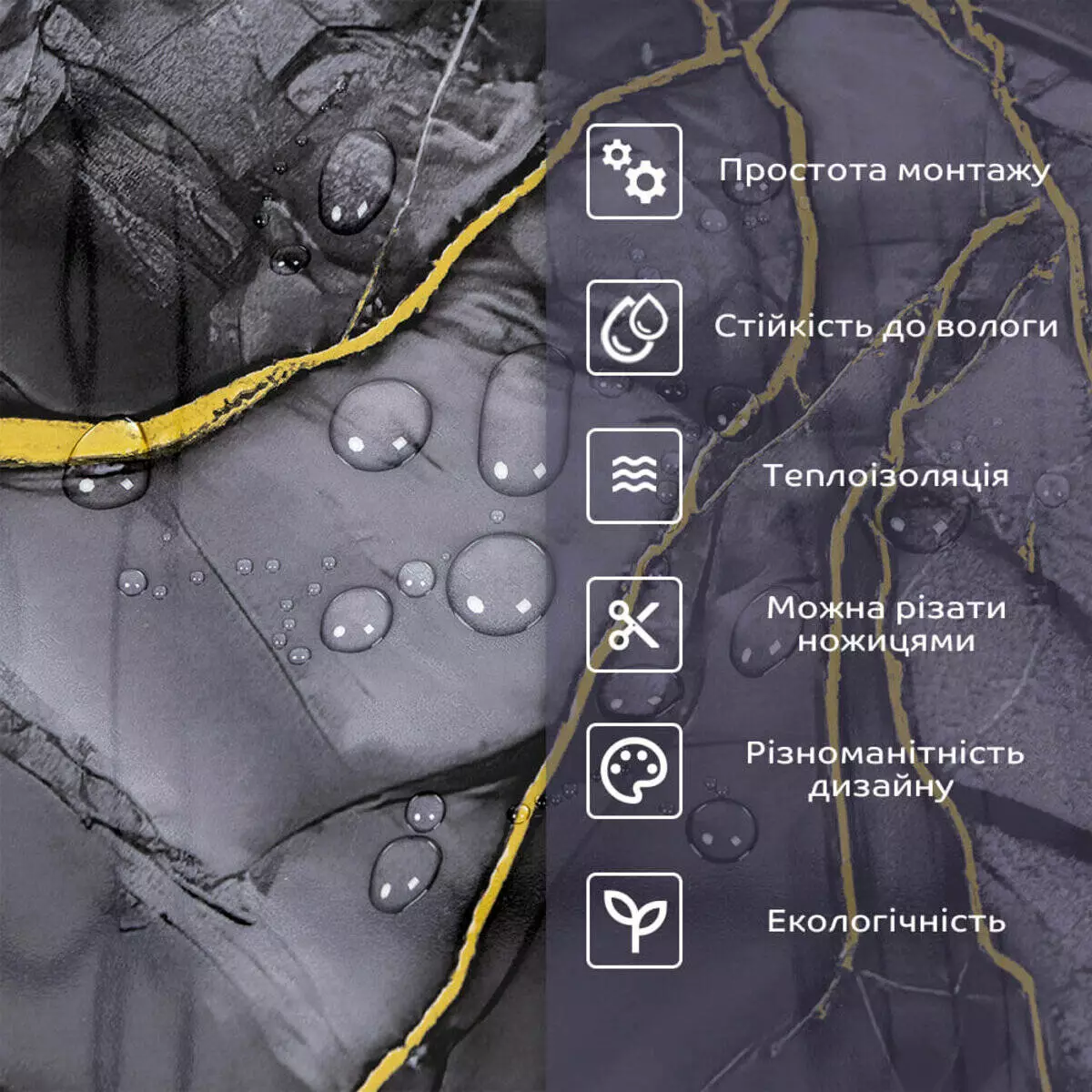 - 2. Стійкість до вологи: матеріал стійкий до впливу вологи та