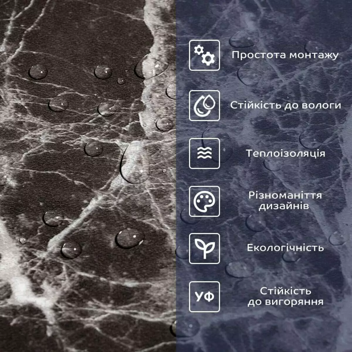 2. Стійкість до вологи: вінілова плитка стійка до вологи, що робить її відмінним вибором для ванних кімнат, кухонь та інших приміщень з підвищеною вологістю, матеріал стійкий також до впливу пари, а також до появи плісняви. Плитка підходить для створення фартуха кухні, можна клеїти біля плити на відстані не менше ніж 30-50 см;