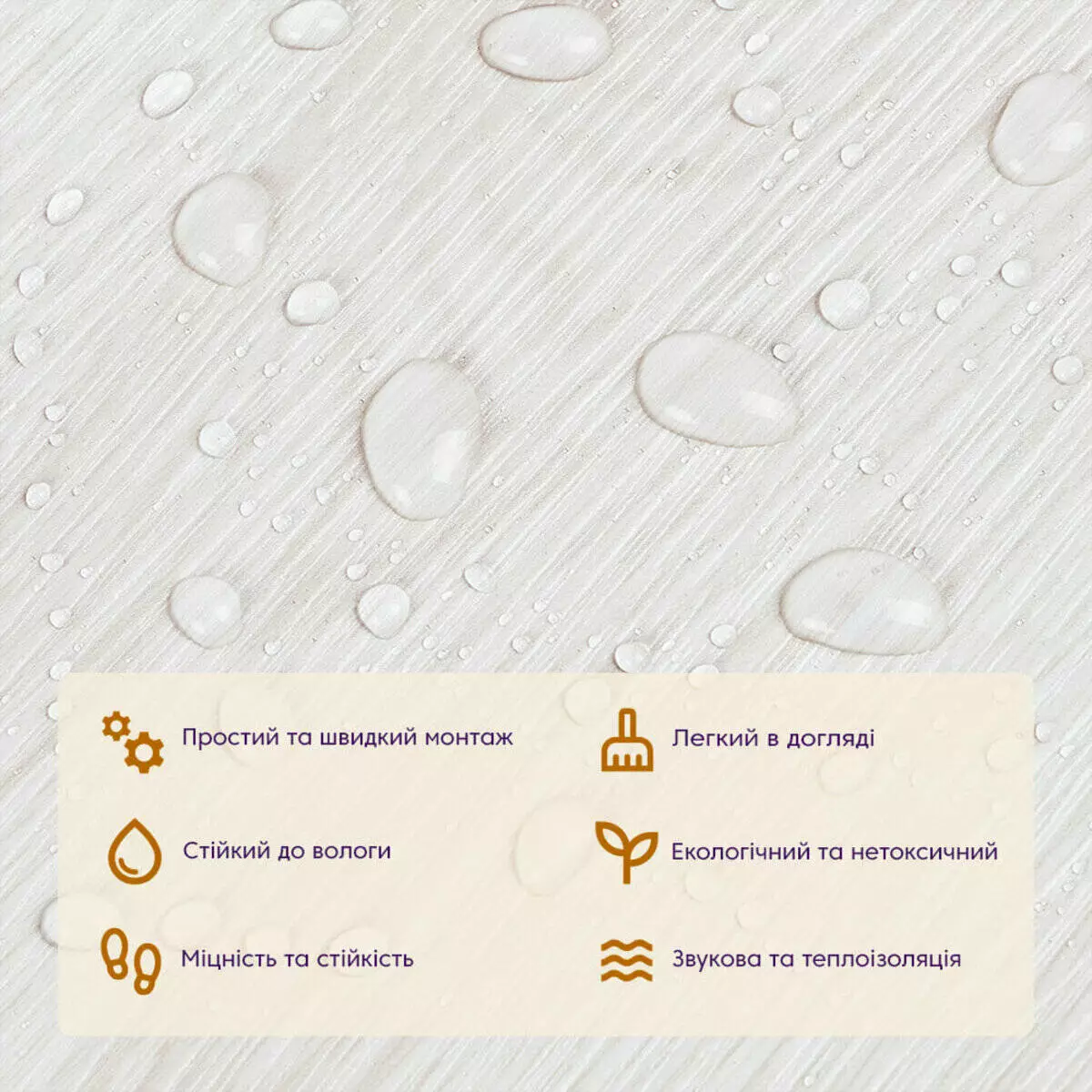 • Звукоізоляція: конструкція шарів забезпечує додаткову звукоізоляцію та робить помешкання більш комфортними.