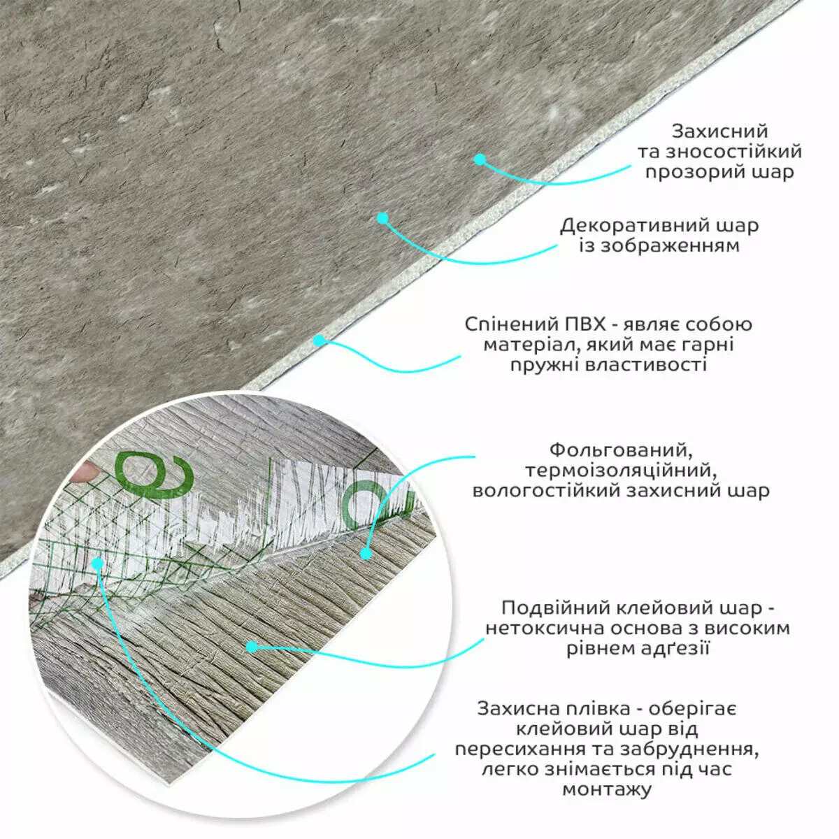 • Полімерний шар, що захищає від потертостей та дрібних механічних пошкоджень, забезпечує довговічність використання, а УФ захист допомагає запобігти вигоранню, зберігаючи колір насиченим, за рахунок чого плитка довго має свій первісний естетичний вигляд.