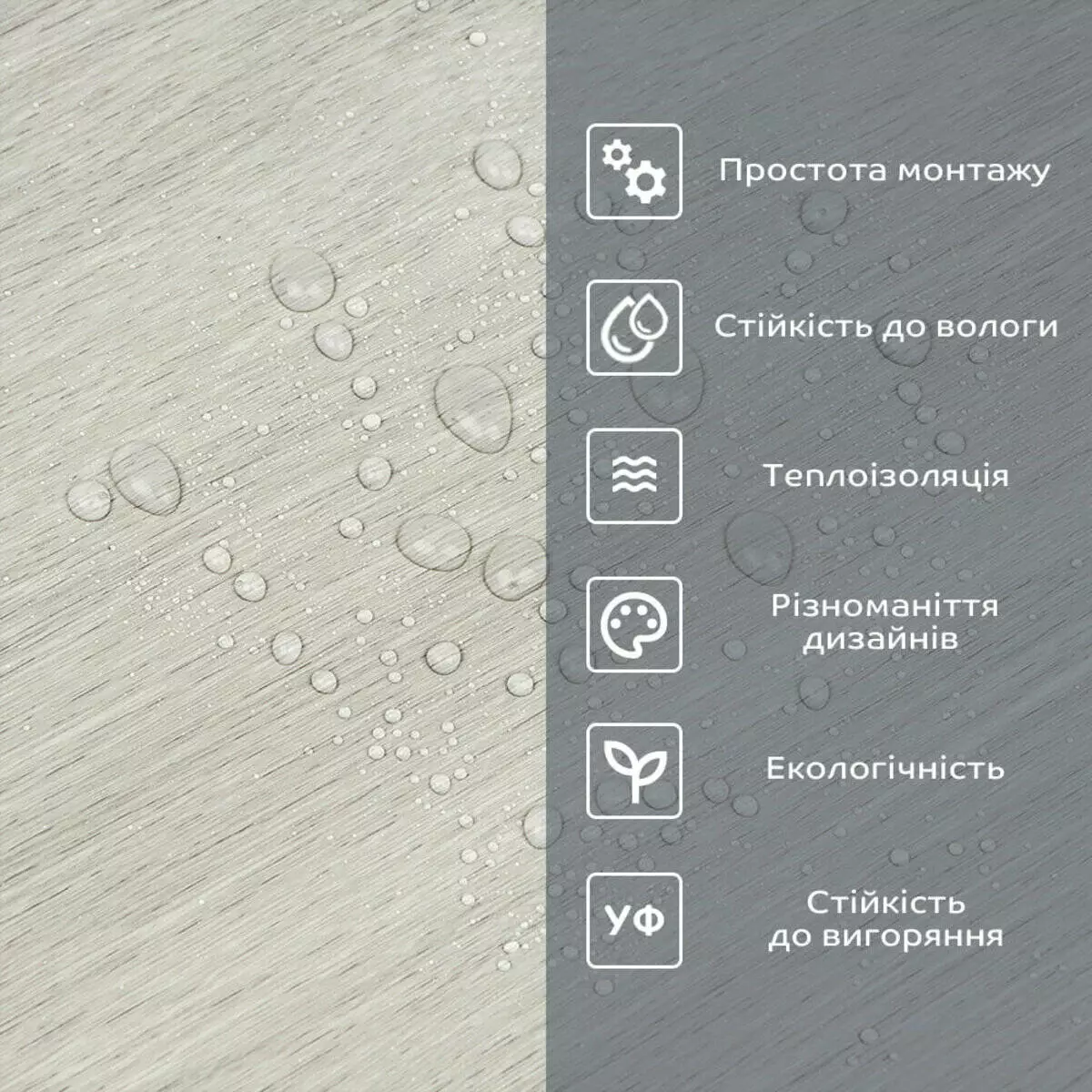 • Легкий догляд: вініл легко очищається і не вимагає спеціальних засобів для чищення.
