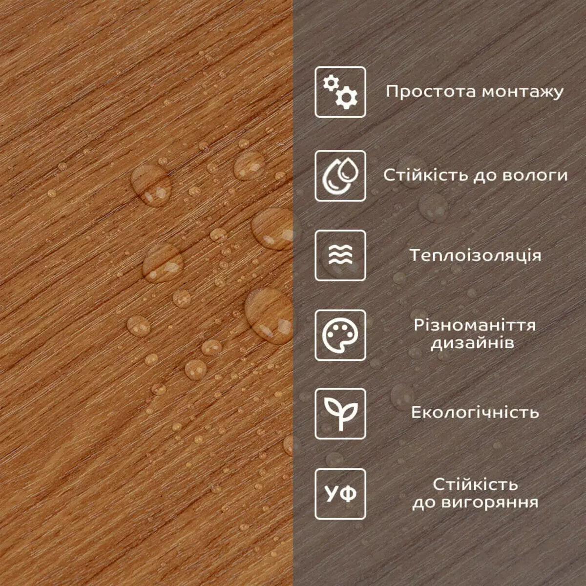 • Легкий догляд: вініл легко очищається і не вимагає спеціальних засобів для чищення.