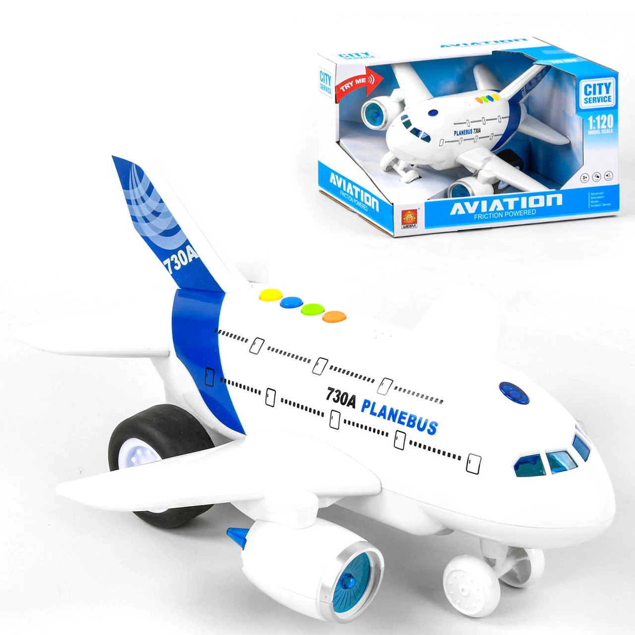 и салон подсвечиваются мерцающей синей подсветкой. Самолет работает