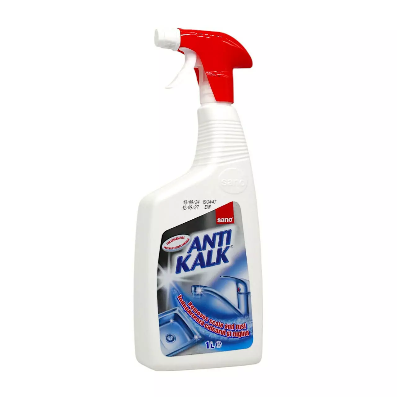 Сильнодіючий спрей швидко видаляє вапняний наліт, іржу та мильні